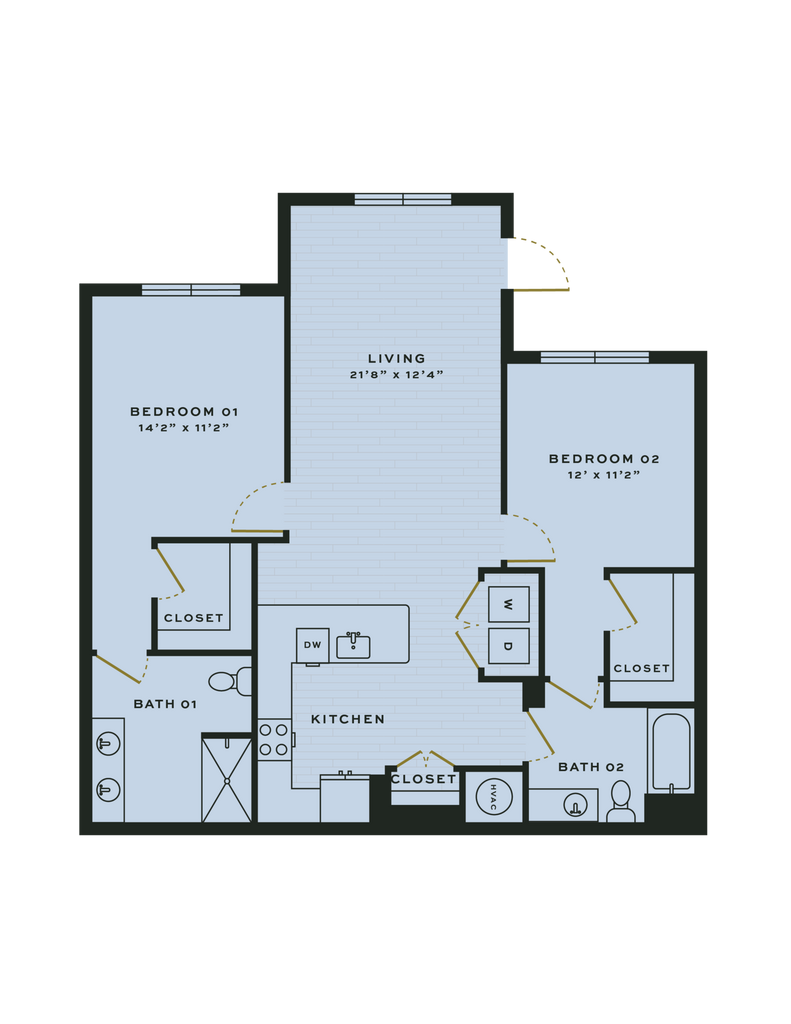 Modelo de apartamento: D2Desde $1,4891 Dormitorio, 1 Baño, 755 sq ftDisponible AhoraLos planos de la planta son una interpretación artística. Todas las dimensiones son aproximadas. Los tamaños o el detalle del producto real y sus especificaciones pueden variar. No todas las características están disponibles en todos los hogares para rentar. Los precios y la disponibilidad están sujetos a cambios. El alquiler que se muestra es mensual. Se pueden aplicar ciertos cargos, por ejemplo, entrega de paquetes, recolección de basura, agua, servicios, etc. Depositos varian. Consulta a un representante para conocer detalles.