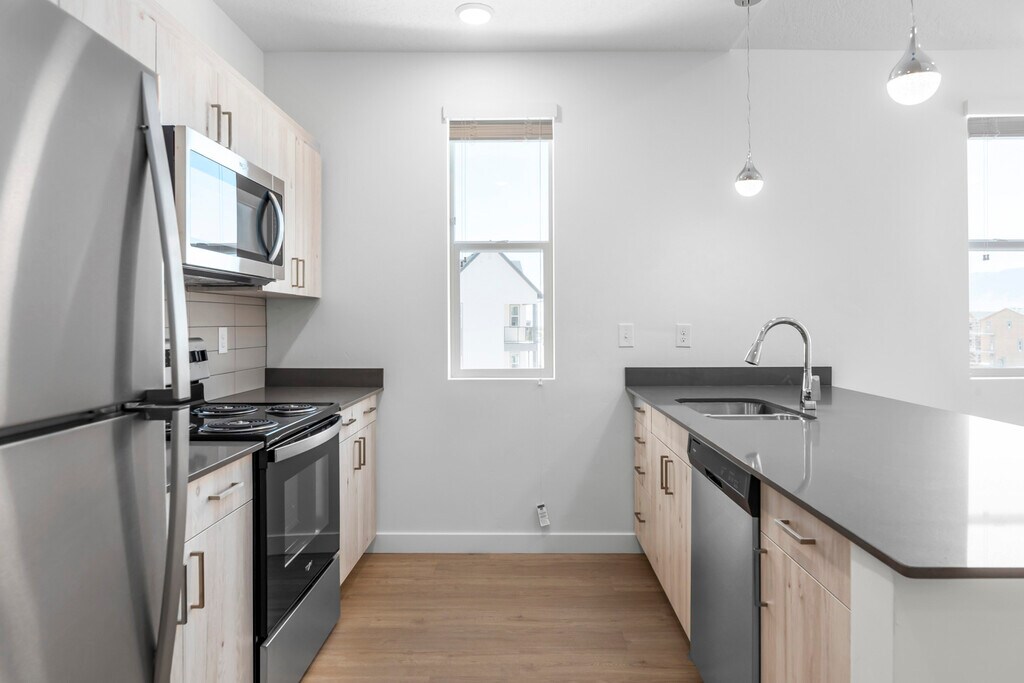 Ubicado frente a las laderas del Monte Timpanogos en Wasatch Range, el nuevo complejo The Kelton Apartments en American Fork, Utah, ofrece un excepcional lujo en el hogar rodeado de la inigualable belleza natural del condado de Utah. Nuestros modernos planos de planta de una, dos y tres habitaciones están repletos de características modernas imprescindibles, mientras que nuestros espacios sociales inspirados en un centro turístico te invitan a relajarte con estilo. Ya sea que estés ejercitando tus músculos culinarios en tu cocina gourmet o relajándote en el jacuzzi del spa, The Kelton Apartments es el paraíso suburbano que has estado buscando.