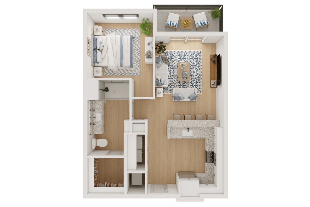 1 Dormitorio, 1 Baño, 755 pies²Precio Mensual TotalDisponible AhoraGalería del Modelo