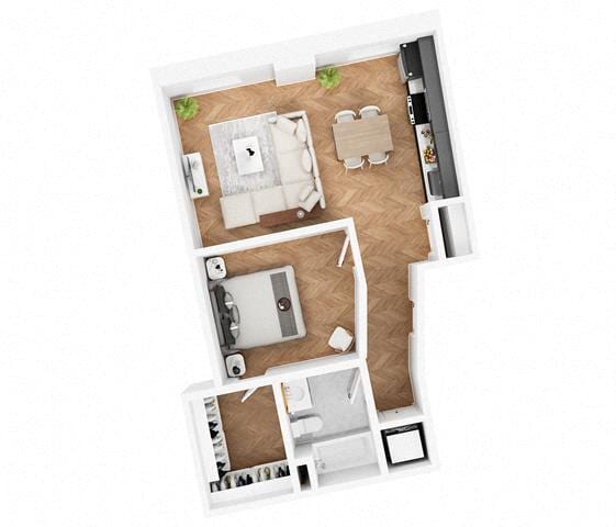 1 Dormitorio, 1 Baño, 712 pies²Disponible Dec 8Galería del Modelo