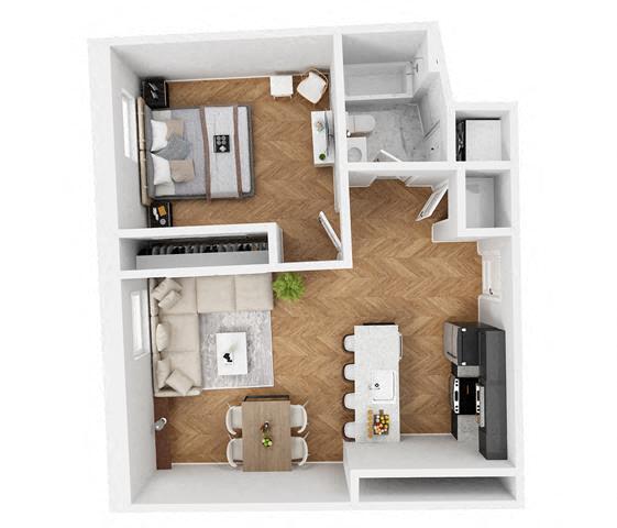 1 Dormitorio, 1 Baño, 587 pies²Disponible AhoraGalería del Modelo
