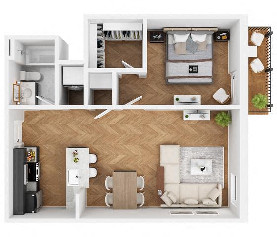 1 Dormitorio, 1 Baño, 888 pies²Disponible AhoraEl más grandeEsta opción tiene las unidades más grandes para este modeloGalería del Modelo
