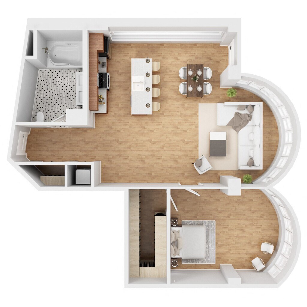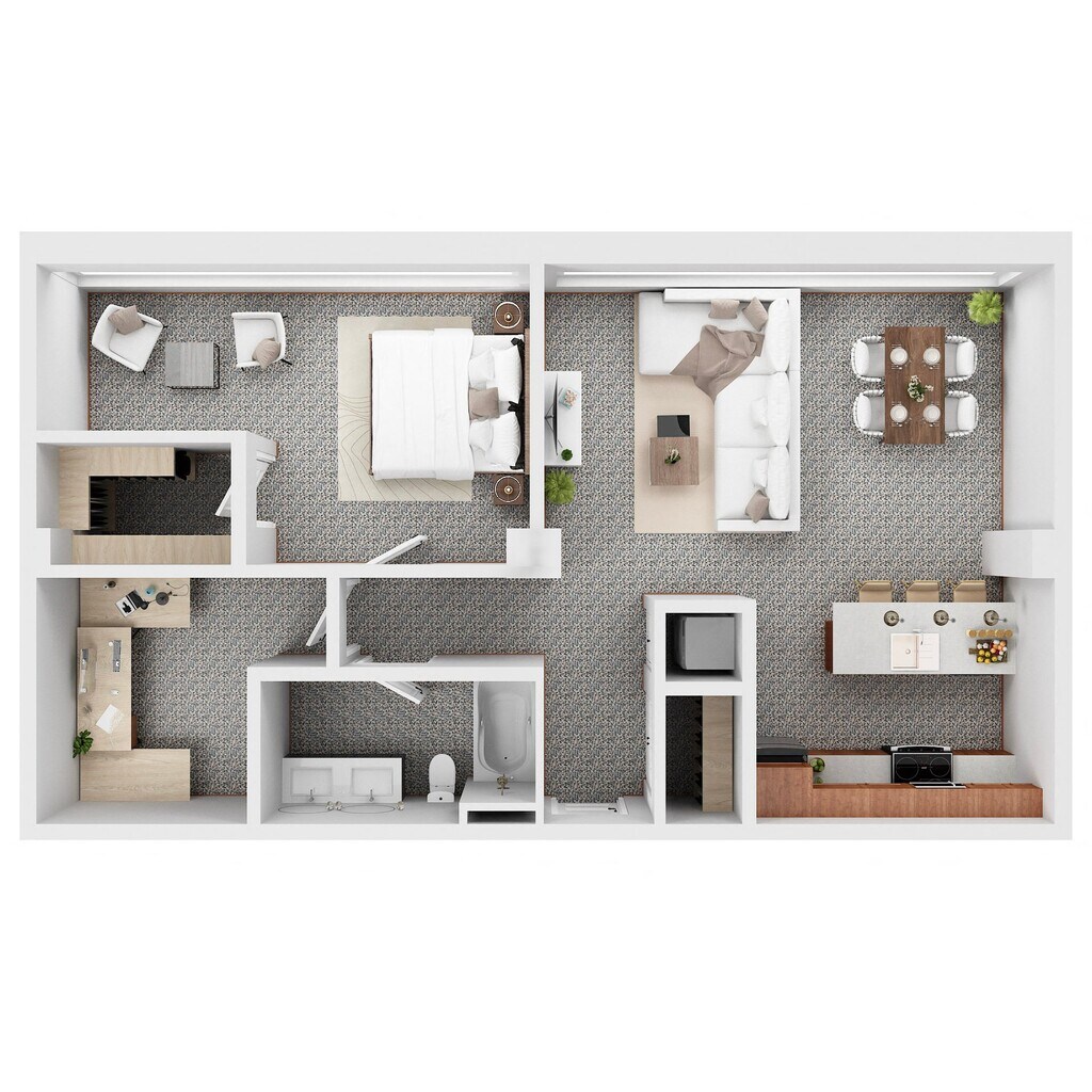 1 Dormitorio, 1 Baño, 861 pies²Galería del Modelo