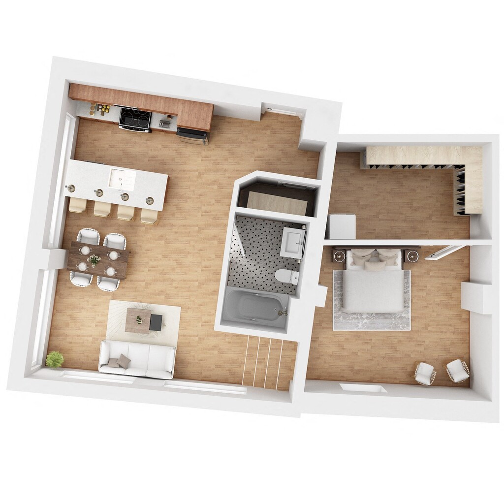 1 Dormitorio, 1 Baño, 537 pies²Galería del Modelo