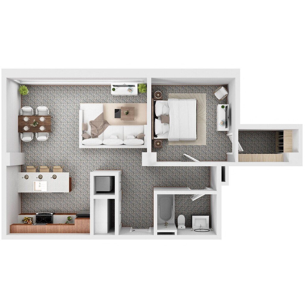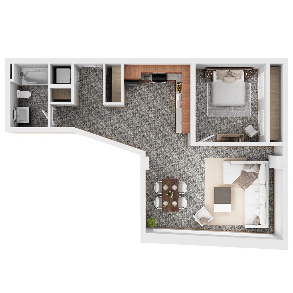 1 Dormitorio, 1 Baño, 712 pies²Galería del Modelo