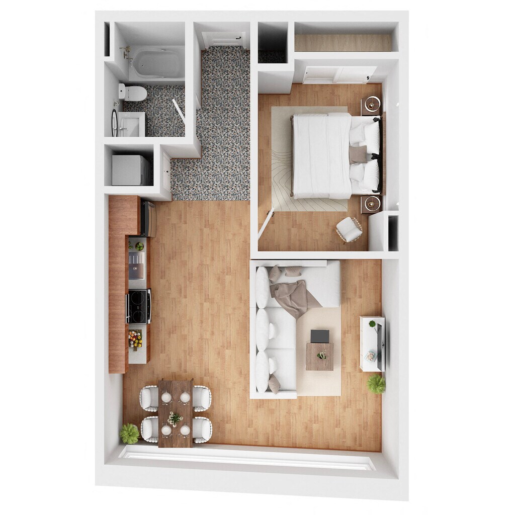 Estudio, 1 Baño, 624 pies²El más grandeEsta opción tiene las unidades más grandes para este modeloGalería del Modelo