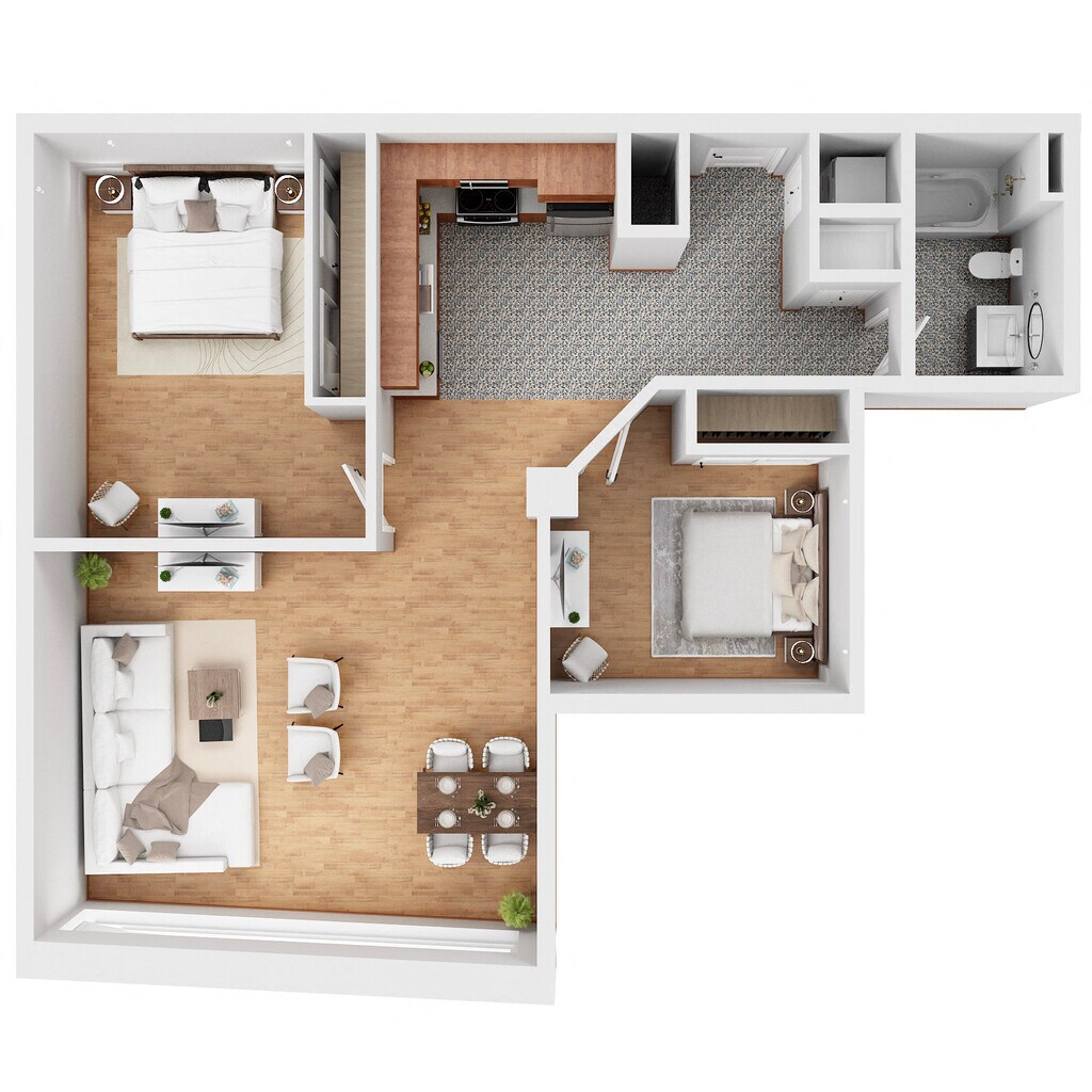 Modelo de apartamento: 405Llame para Precios1 Dormitorio, 1 Baño, 712 sq ftNo Disponible![]()