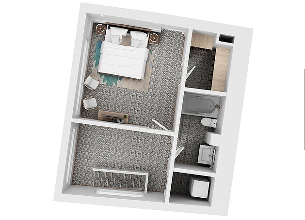Modelo de apartamento: 302Llame para Precios1 Dormitorio, 1 Baño, 557 sq ftNo Disponible![]()