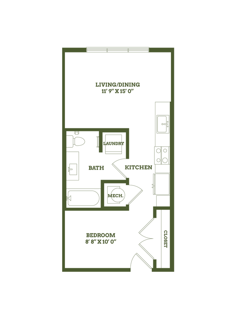 Estudio, 1 Baño, 507-618 pies²Disponible AhoraGalería del Modelo