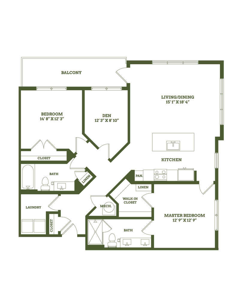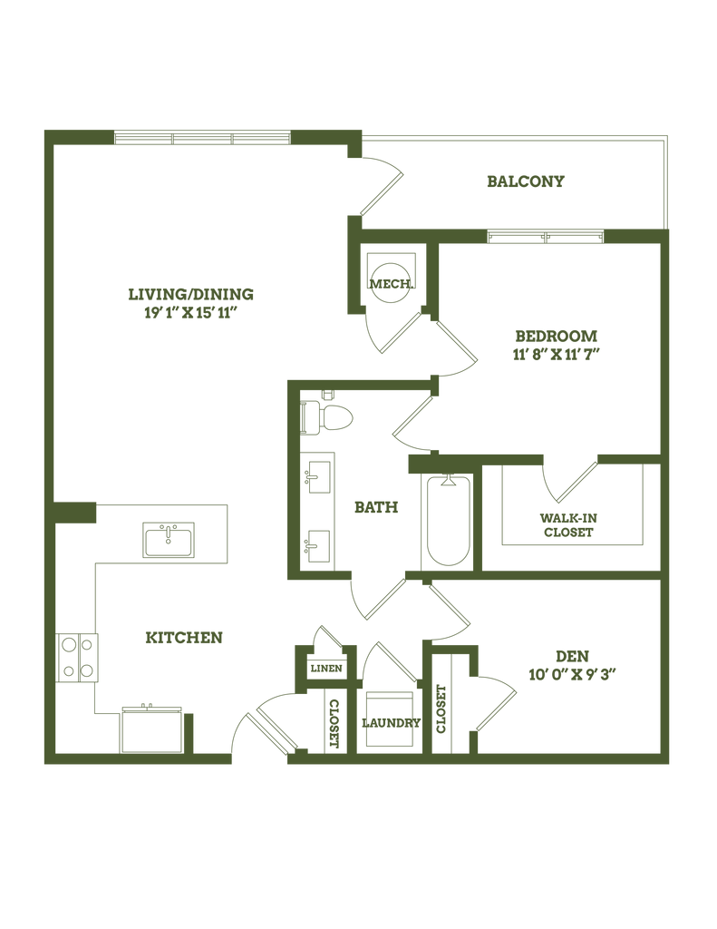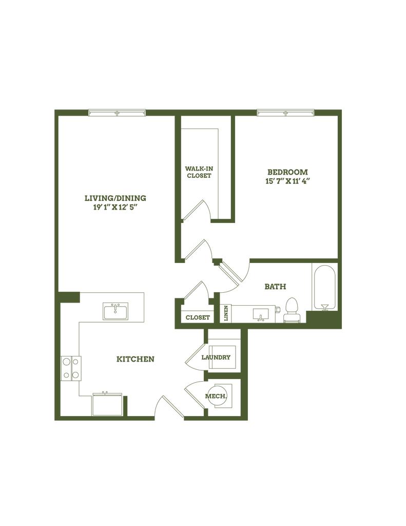 Estudio, 1 Baño, 660-742 pies²Disponible AhoraEl más grandeEsta opción tiene las unidades más grandes para este modeloGalería del Modelo