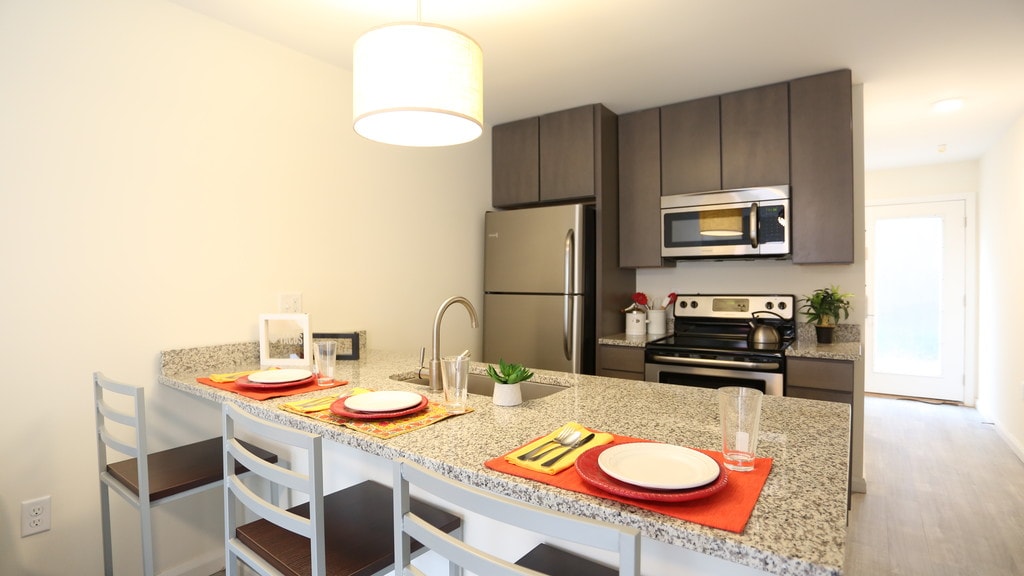 The King Apartments es una lujosa forma de vivir cerca de Victorian Village y Short North sin terminar arruinado. Ubicado a minutos de distancia de Ohio State University Wexner Medical, este lugar es perfecto para que estudiantes universitarios lo llamen hogar. Estos apartamentos tienen encimeras de granito, lavadora/secadora en el apartamento y están completamente amueblados. ¡Ponte en contacto con nuestro equipo para completar tu solicitud hoy mismo!