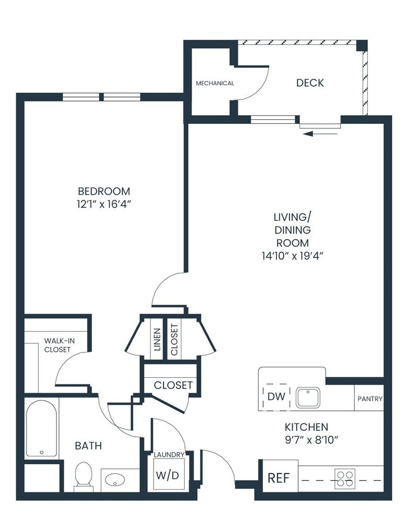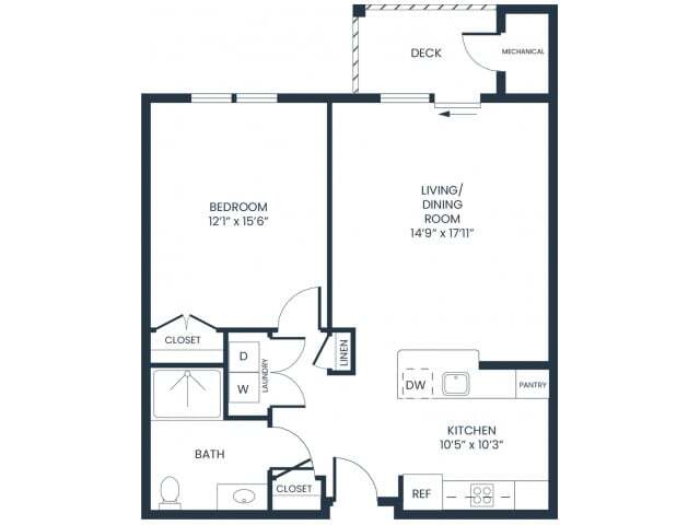 1 Dormitorio, 1 Baño, 860 pies²El más grandeEsta opción tiene las unidades más grandes para este modeloGalería del Modelo