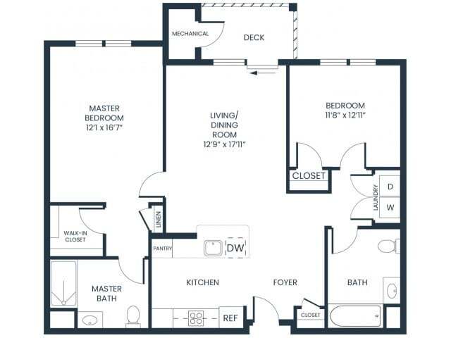 2 Dormitorios, 2 Baños, 1111 pies²Precio Mensual TotalDisponible AhoraEl más grandeEsta opción tiene las unidades más grandes para este modeloGalería del Modelo