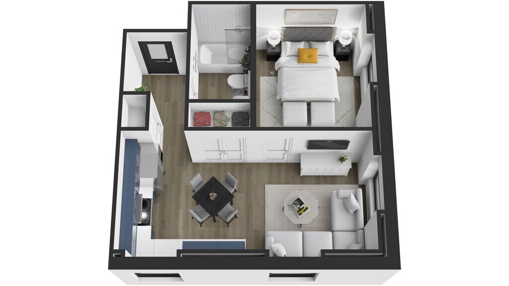 Unidad: 103 - Imagen 10 Unidad de apartamento: 206Modelo de apartamento: 1BR/1.0BA1 Dormitorio, 1 Baño, 508 sq ftDisponible April 8, 2026![]()
