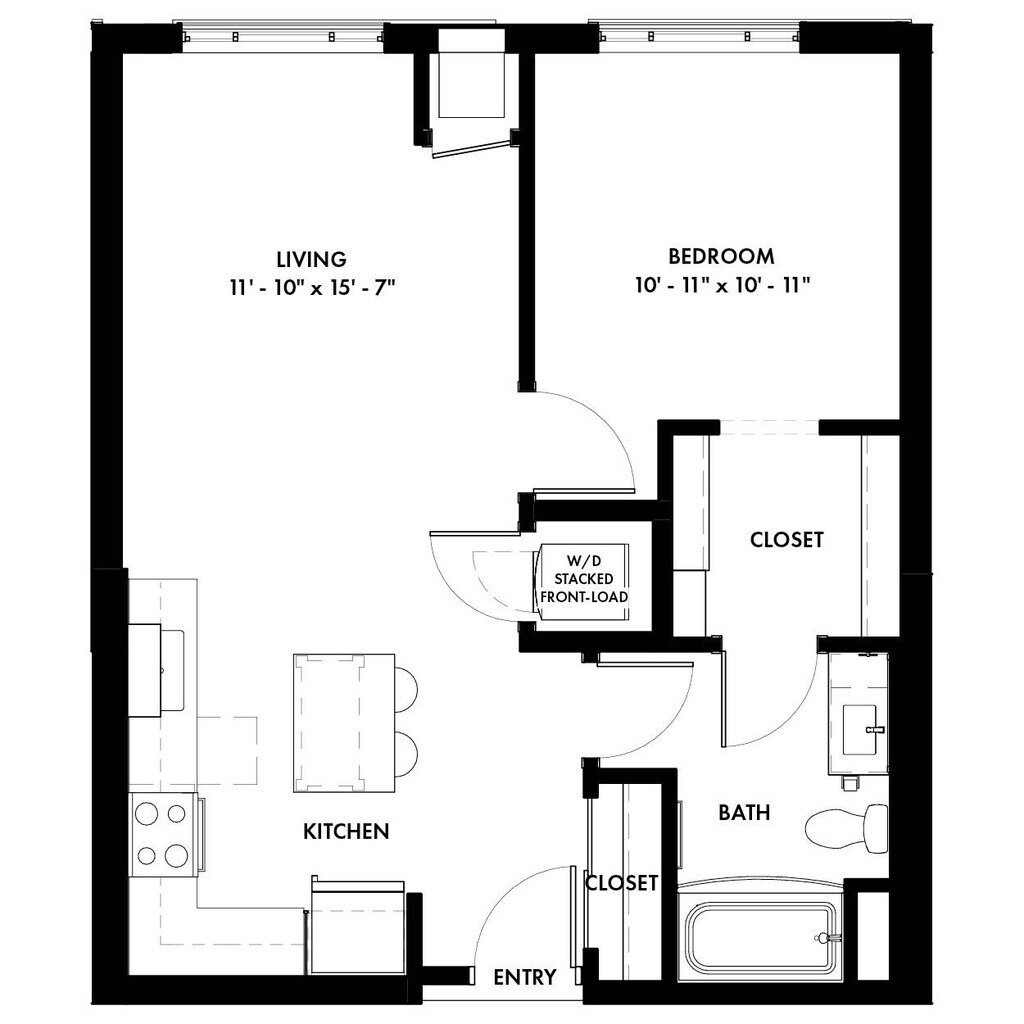 Modelo de apartamento: A1-SA - Income RestrictedLlame para Precios1 Dormitorio, 1 Baño, 694 sq ftNo Disponible![]()