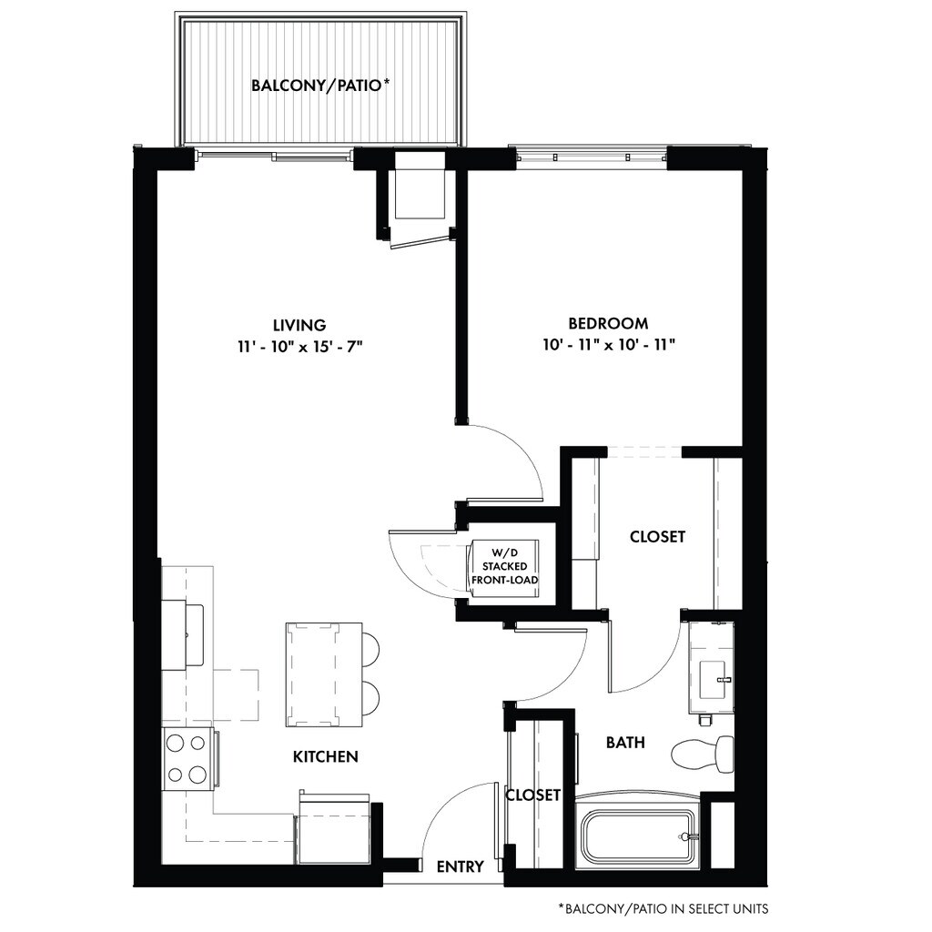 Modelo de apartamento: S5Llame para PreciosEstudio, 1 Baño, 601 sq ftNo Disponible![]()