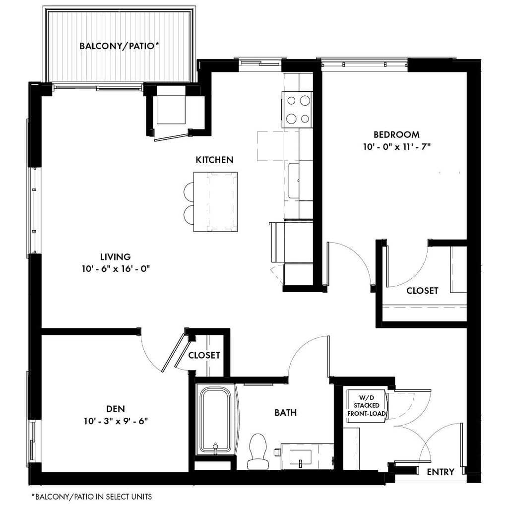 Modelo de apartamento: S2Llame para PreciosEstudio, 1 Baño, 588 sq ftNo Disponible![]()