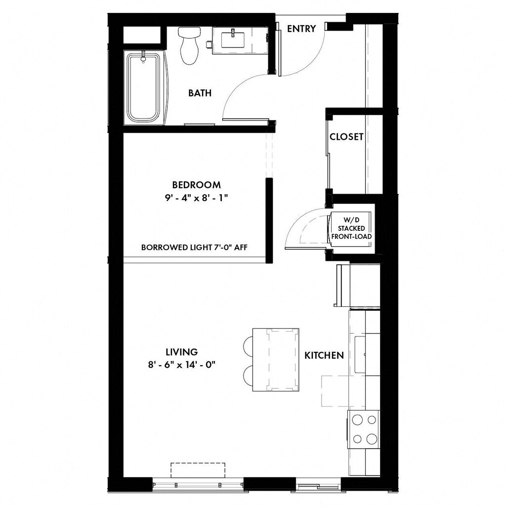 Estudio, 1 Baño, 601 pies²Galería del Modelo