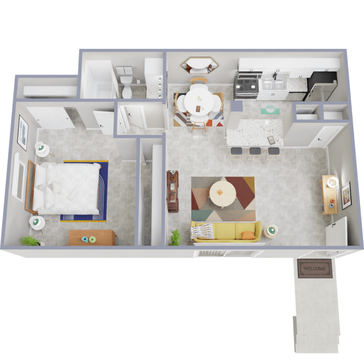 1 Dormitorio, 1 Baño, 600 pies²Disponible AhoraGalería del Modelo