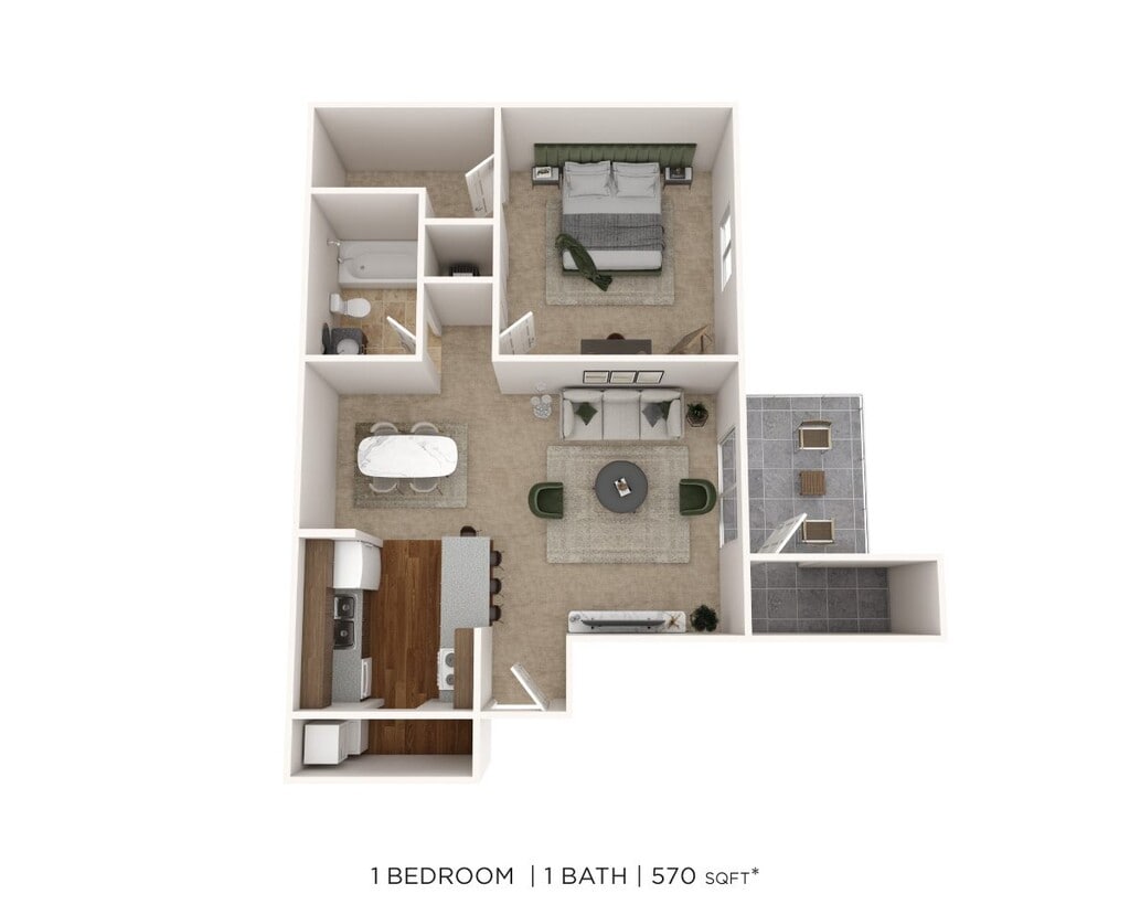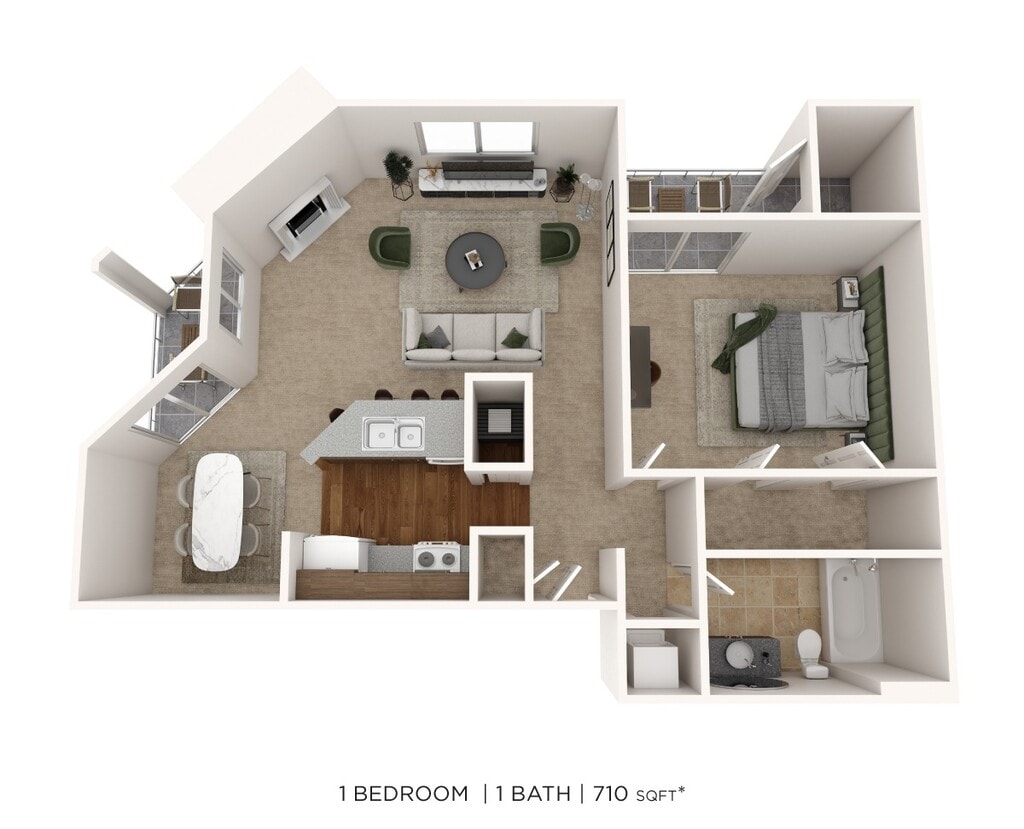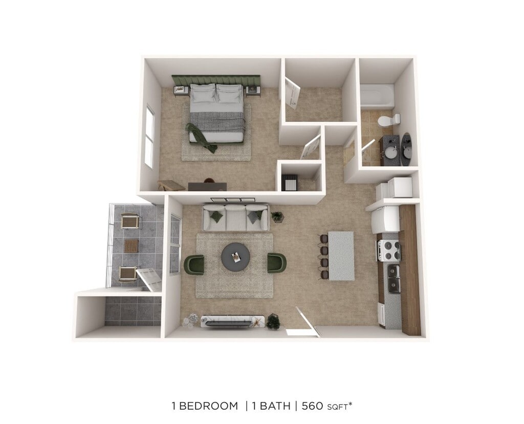 1 Dormitorio, 1 Baño, 560-710 pies²Disponible AhoraGalería del Modelo