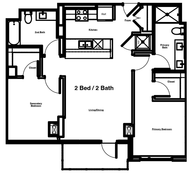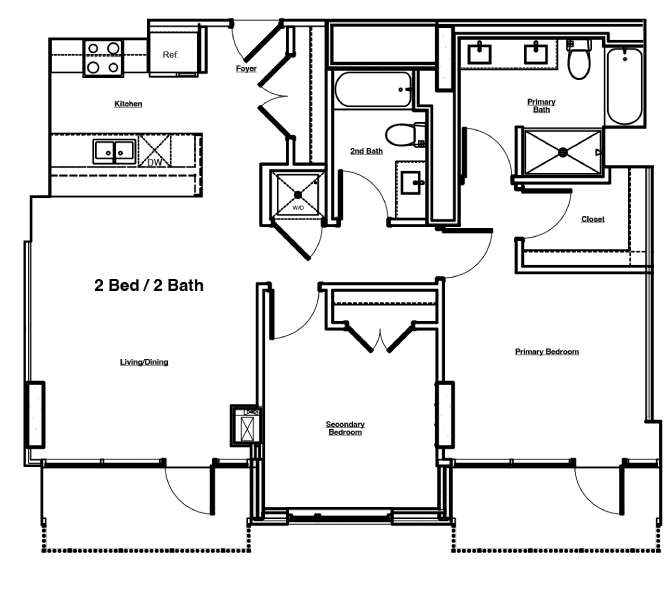E2 - Plano 1 Los planos de la planta son una interpretación artística. Todas las dimensiones son aproximadas. Los tamaños o el detalle del producto real y sus especificaciones pueden variar. No todas las características están disponibles en todos los hogares para rentar. Los precios y la disponibilidad están sujetos a cambios. El alquiler que se muestra es mensual. Se pueden aplicar ciertos cargos, por ejemplo, entrega de paquetes, recolección de basura, agua, servicios, etc. Depositos varian. Consulta a un representante para conocer detalles.