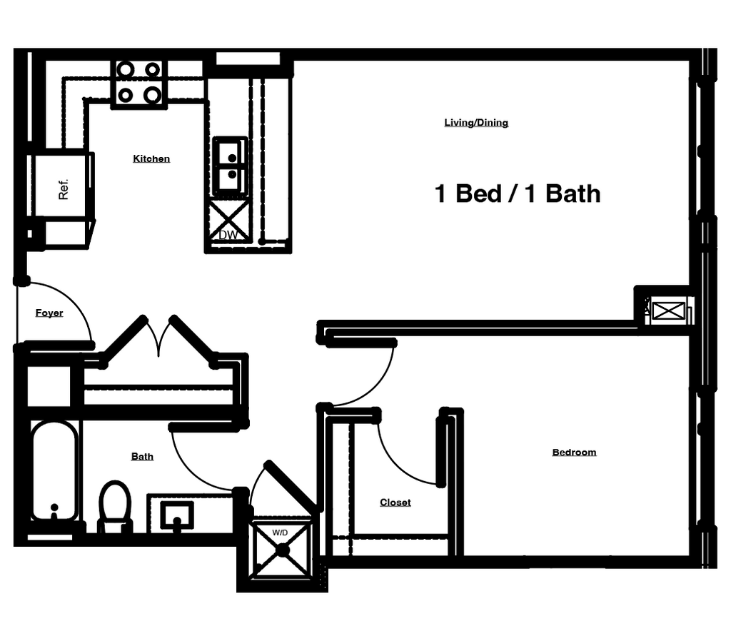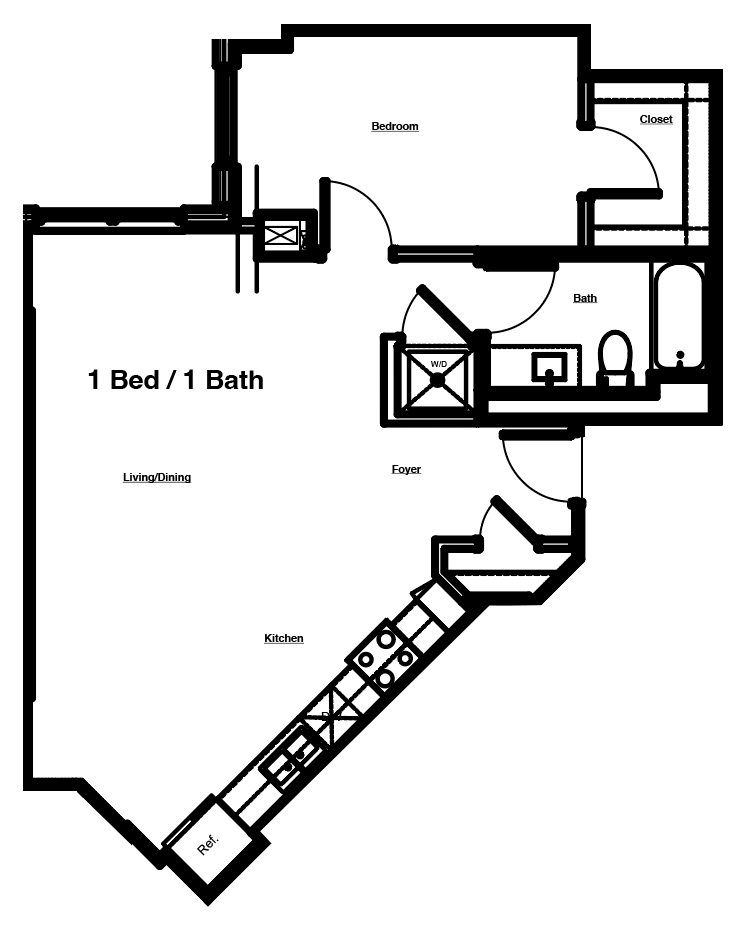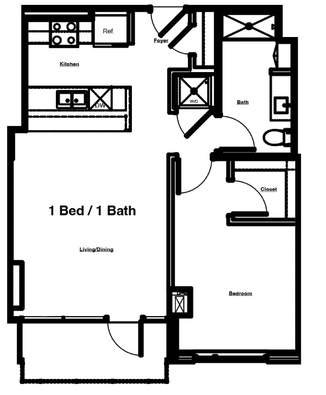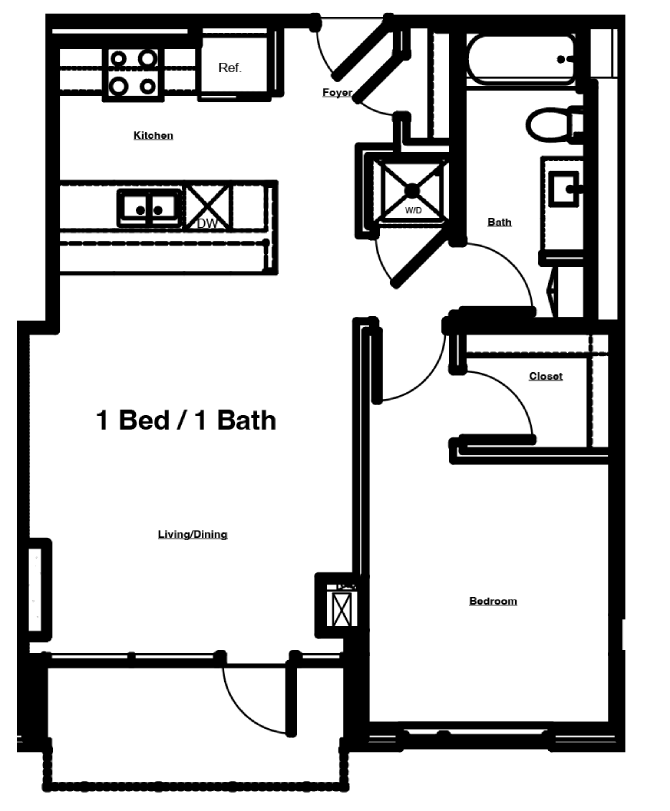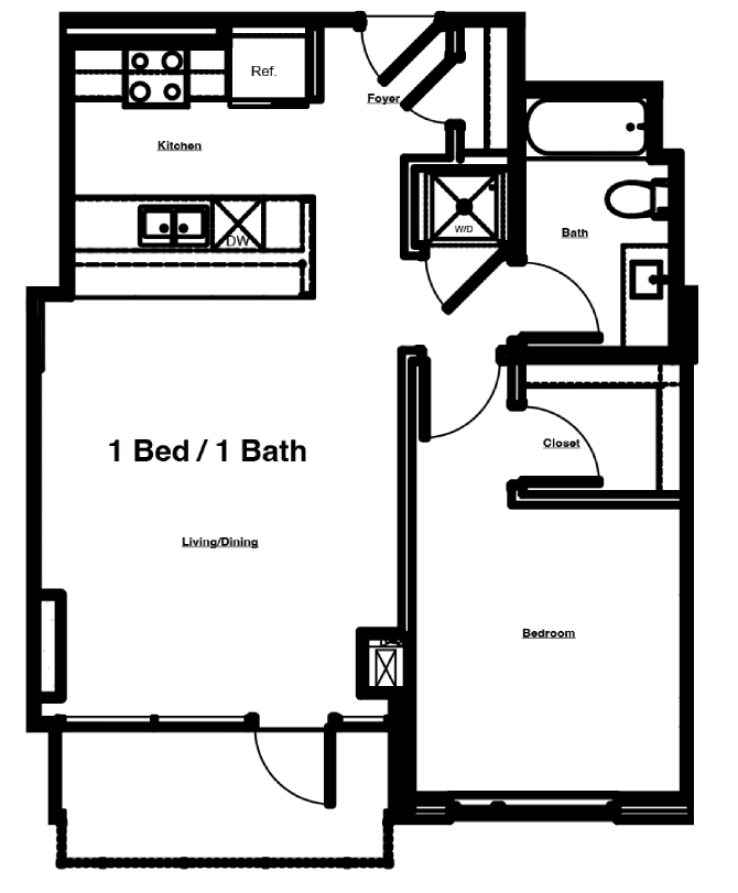 Estudio, 1 Baño, 570 pies²Precio Mensual TotalDisponible AhoraGalería del Modelo