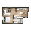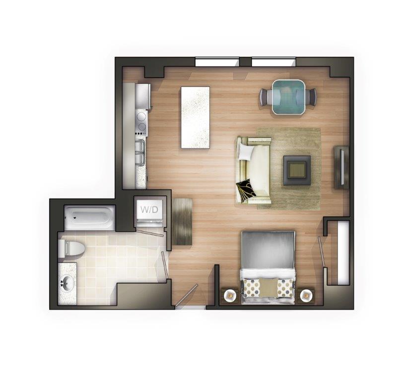 Estudio, 1 Baño, 563 pies²El más grandeEsta opción tiene las unidades más grandes para este modeloGalería del Modelo