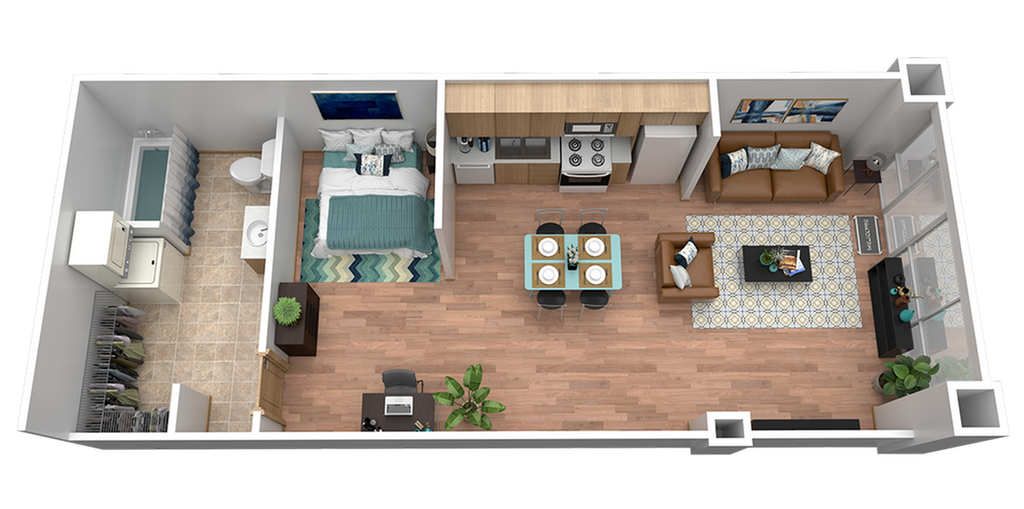Estudio, 1 Baño, 532 pies²Disponible August 1, 2026Galería del Modelo