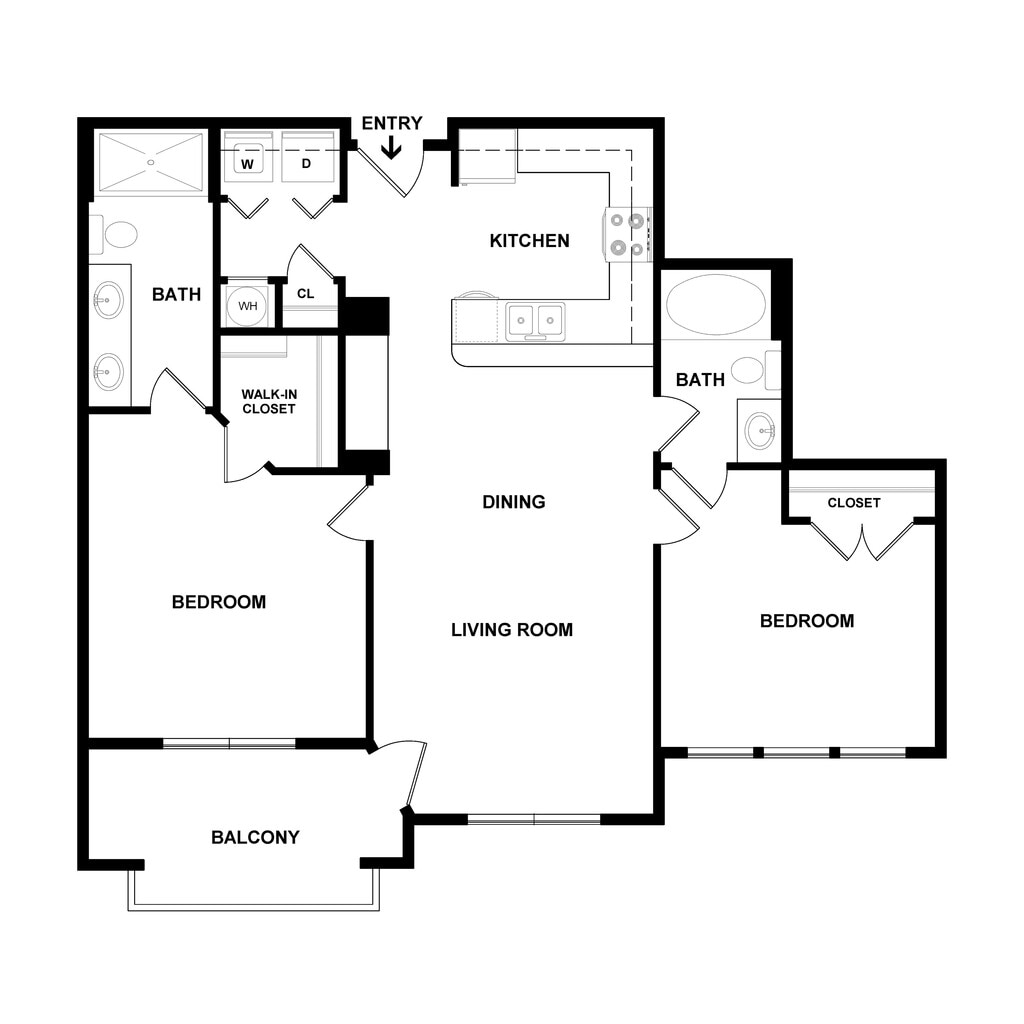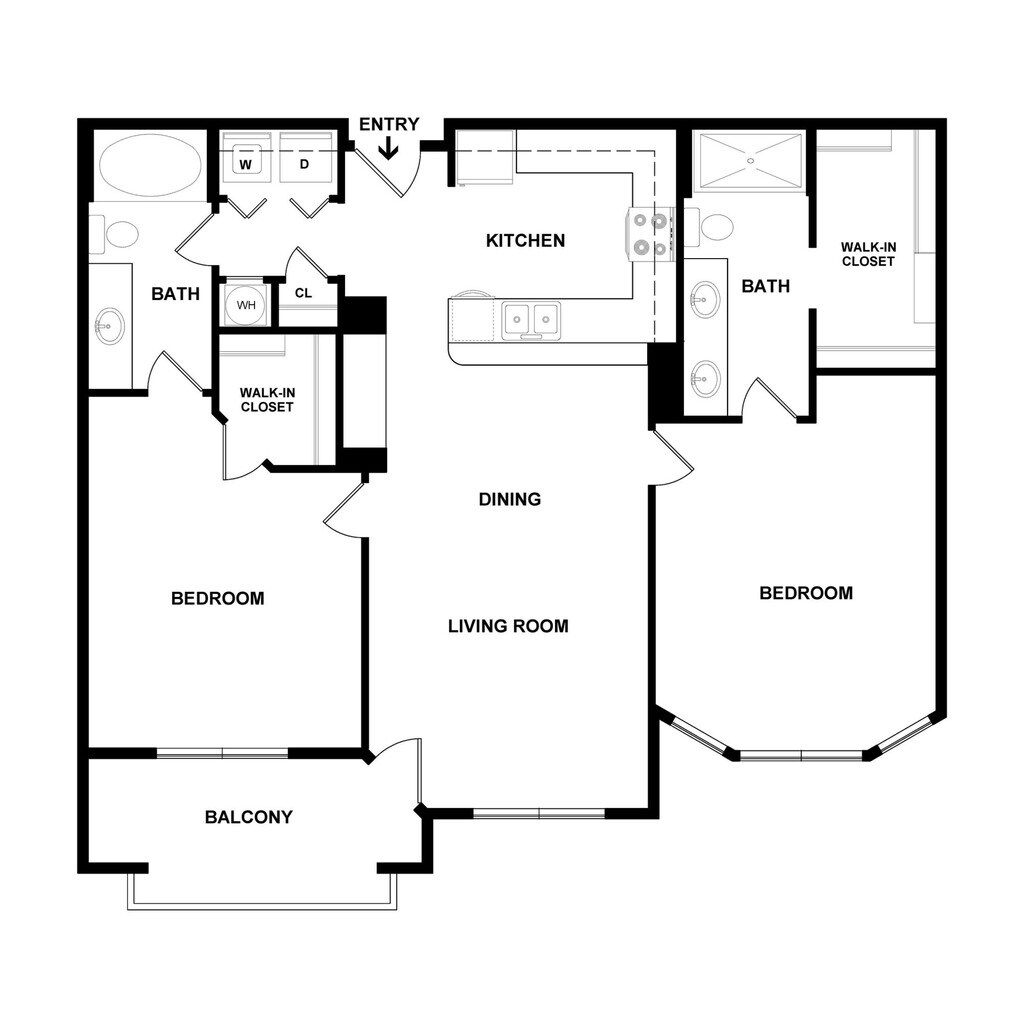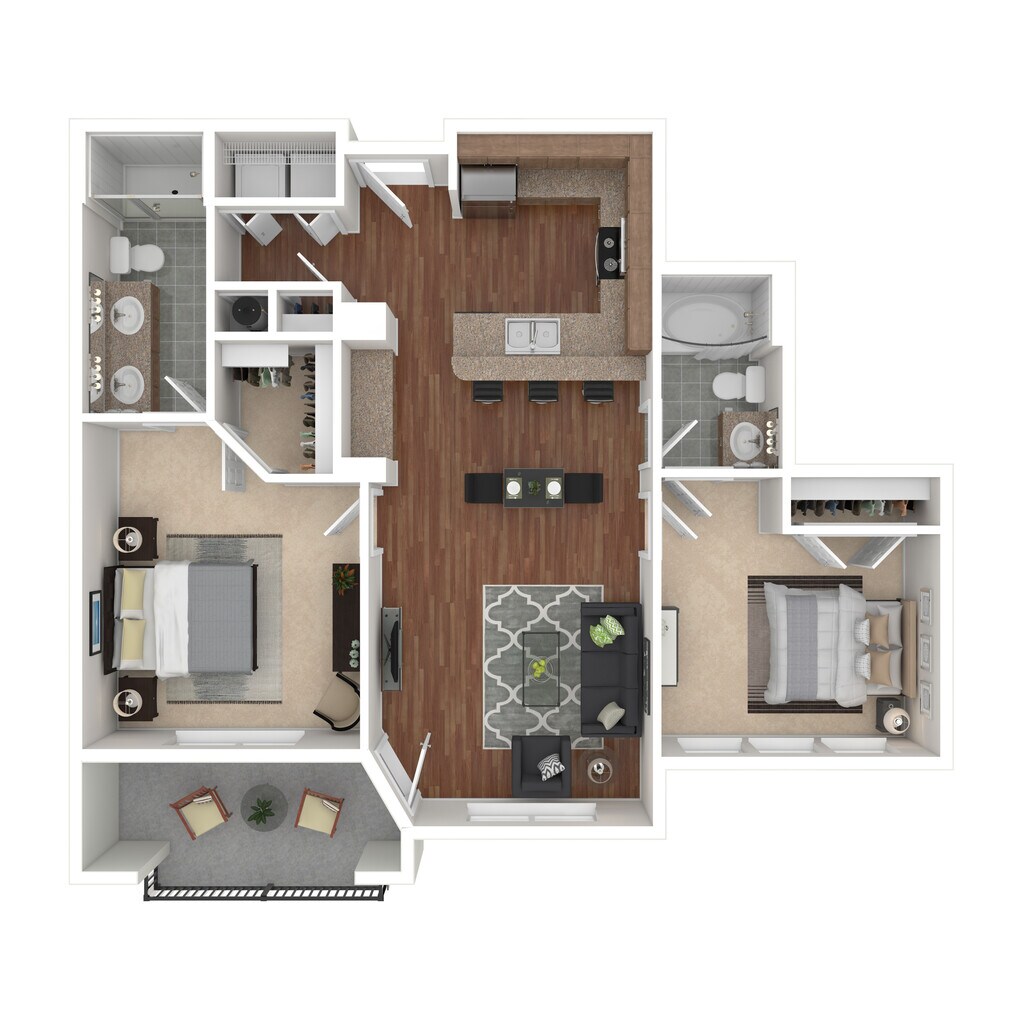 Modelo de apartamento: A2Desde $1,3551 Dormitorio, 1 Baño, 782 sq ftDisponible Ahora![]()