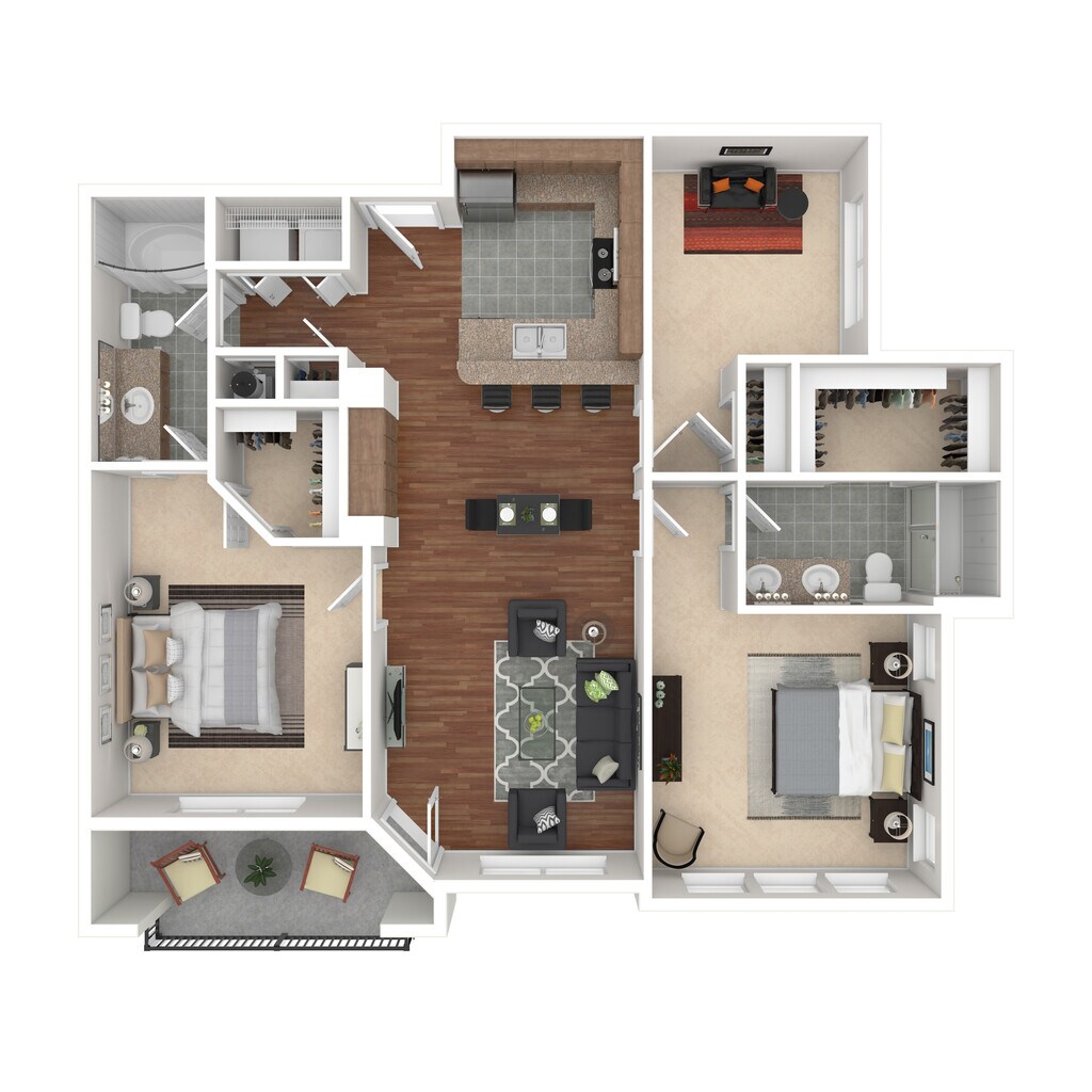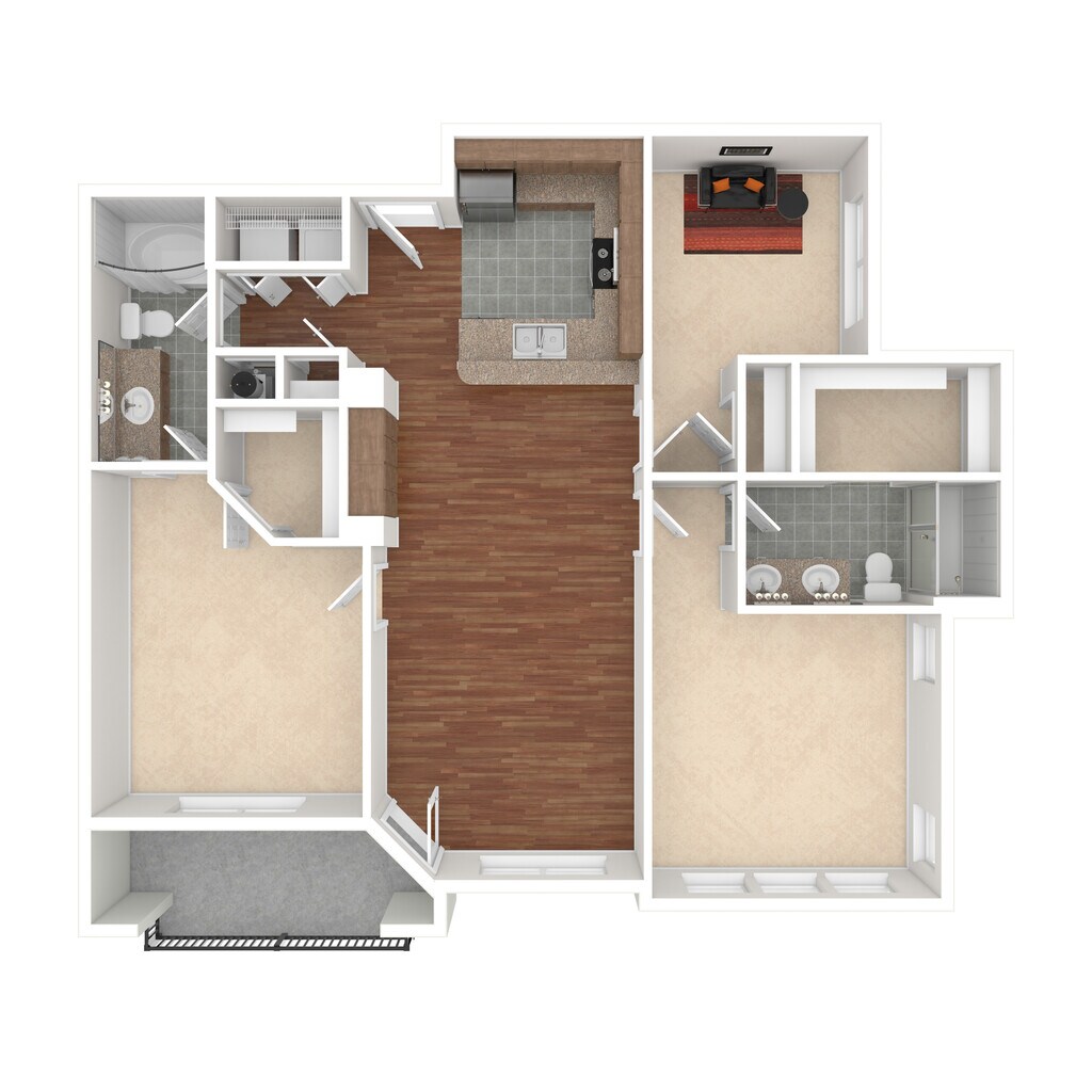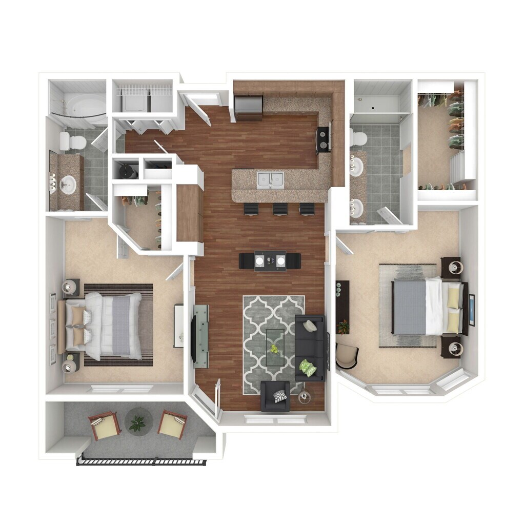 Modelo de apartamento: A2Desde $1,3551 Dormitorio, 1 Baño, 782 sq ftDisponible Ahora![]()