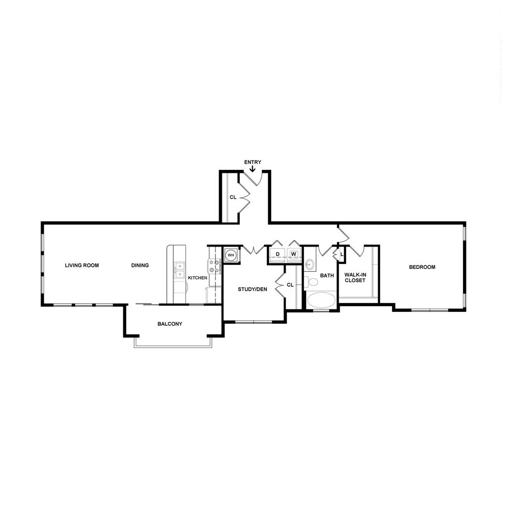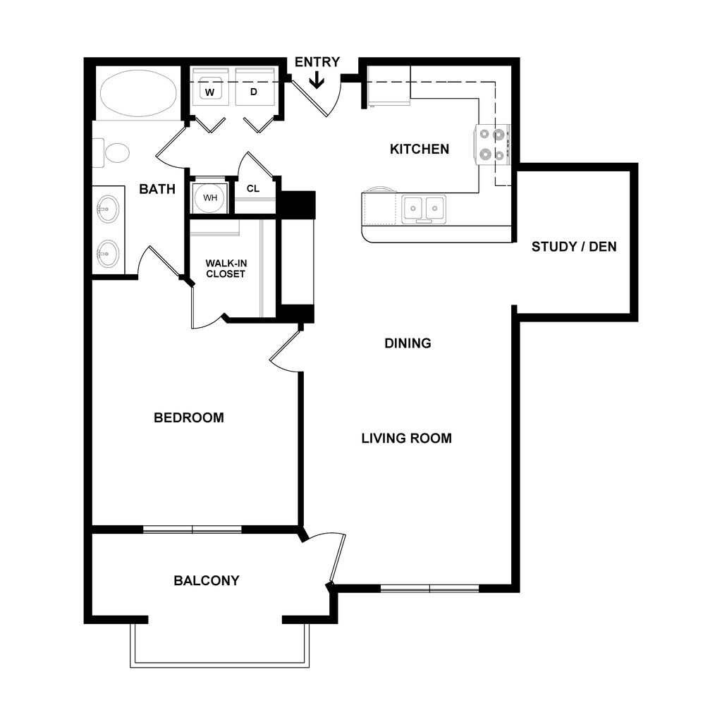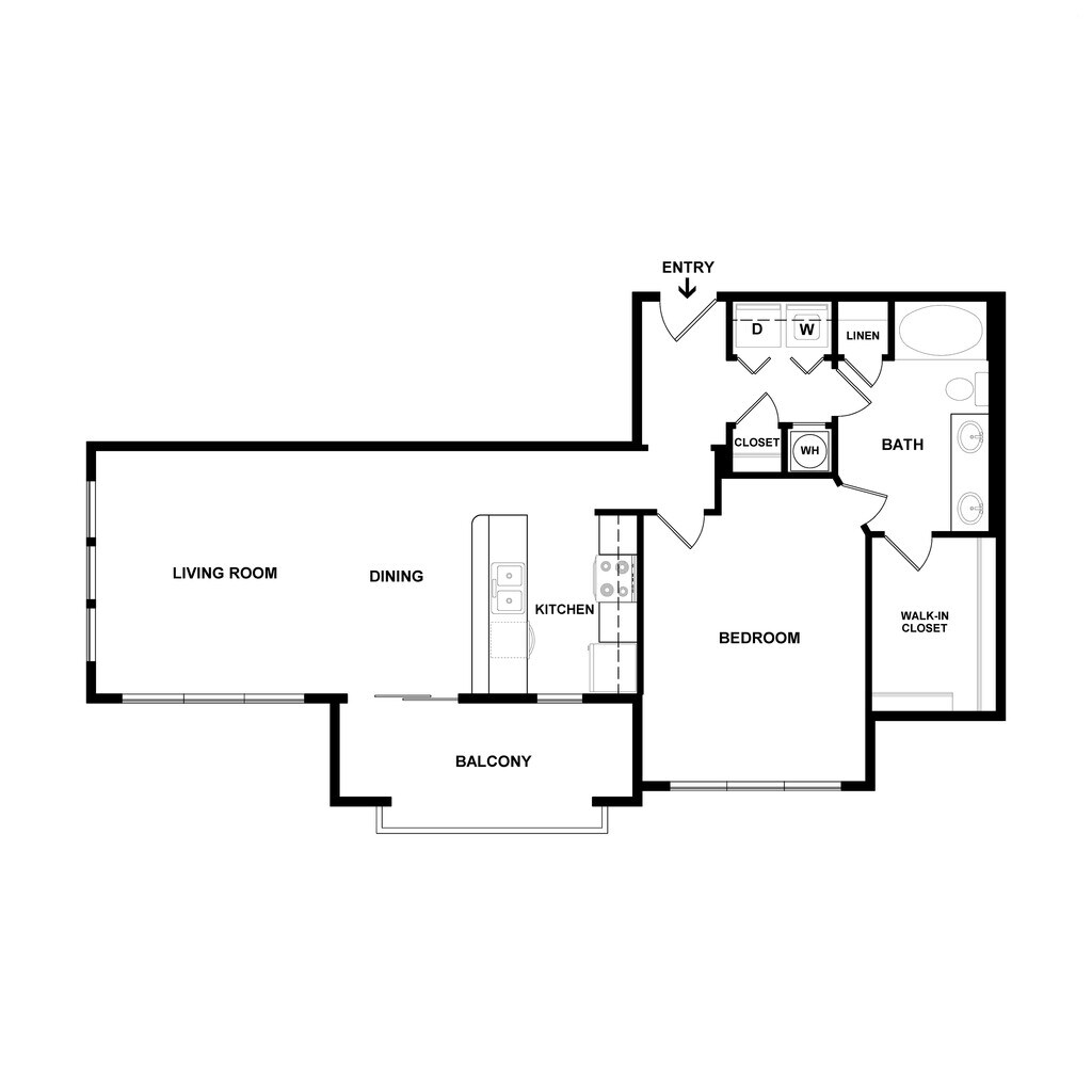 Modelo de apartamento: A1Desde $1,3451 Dormitorio, 1 Baño, 749 sq ftDisponible Ahora![]()