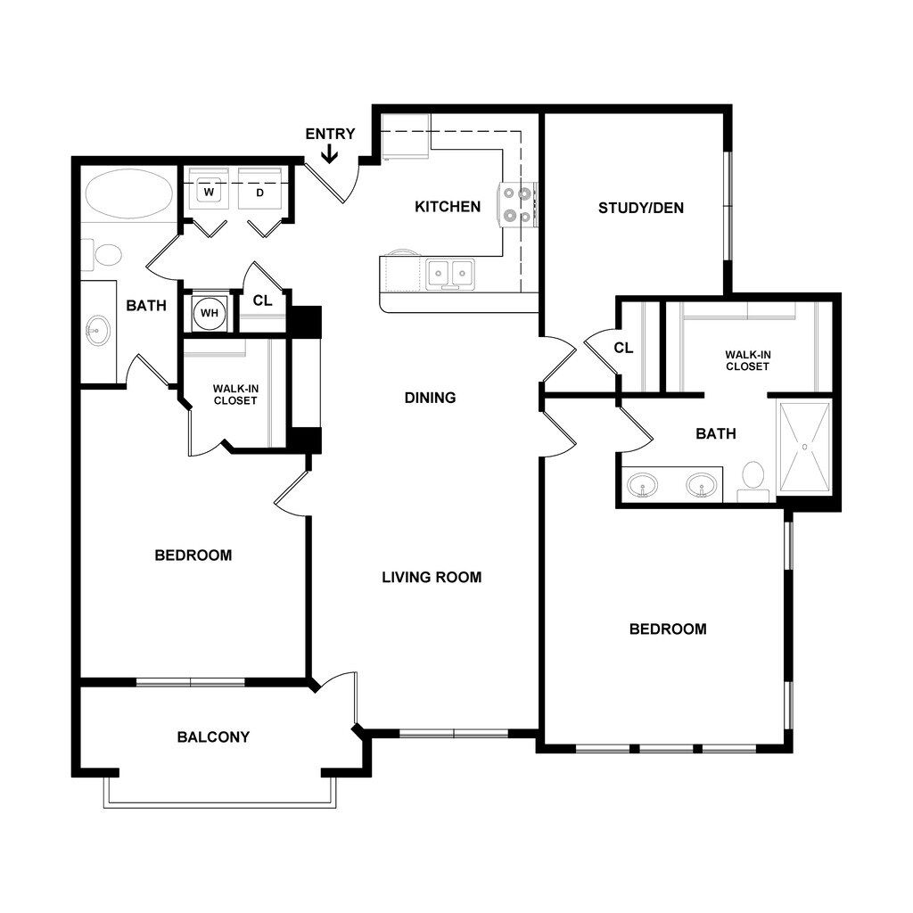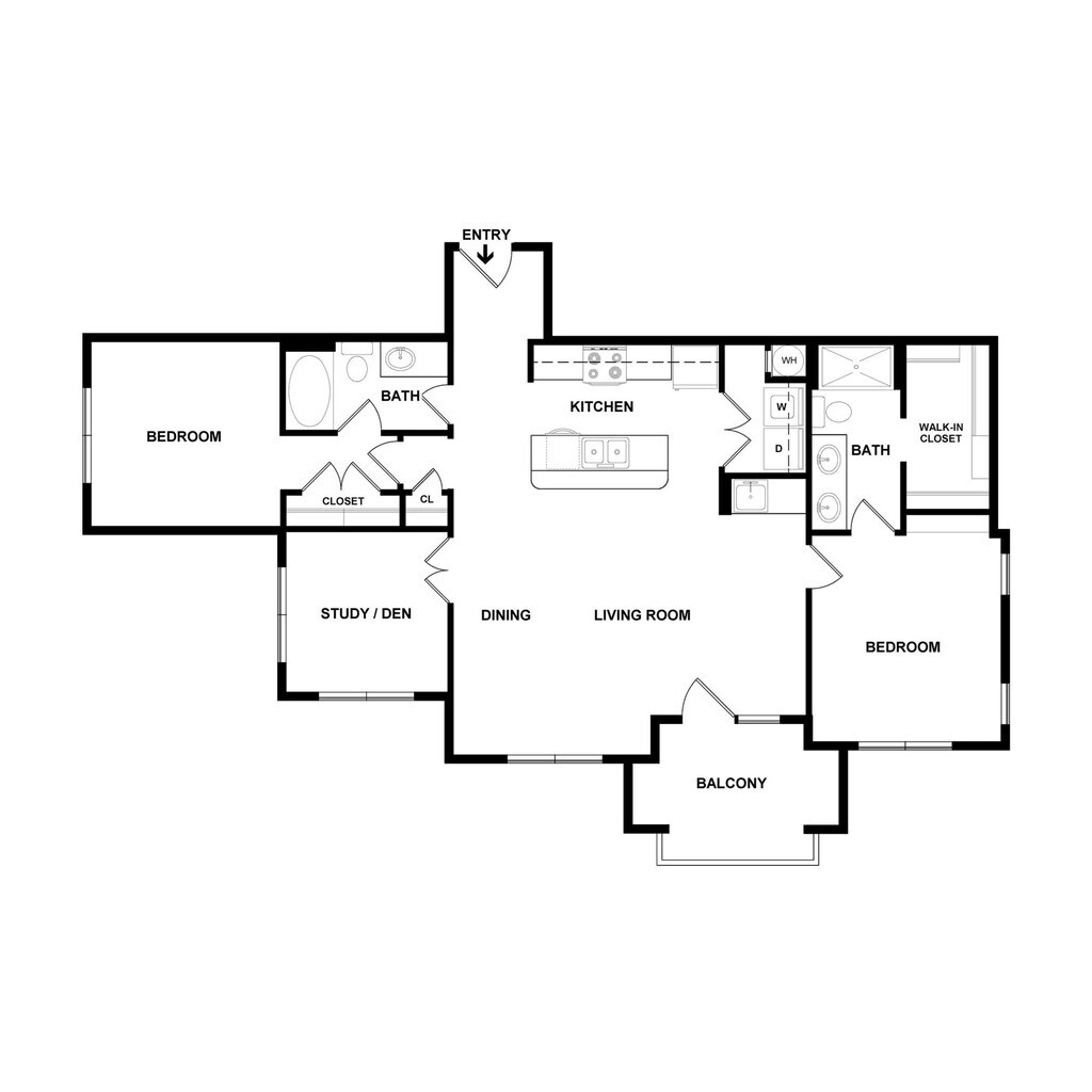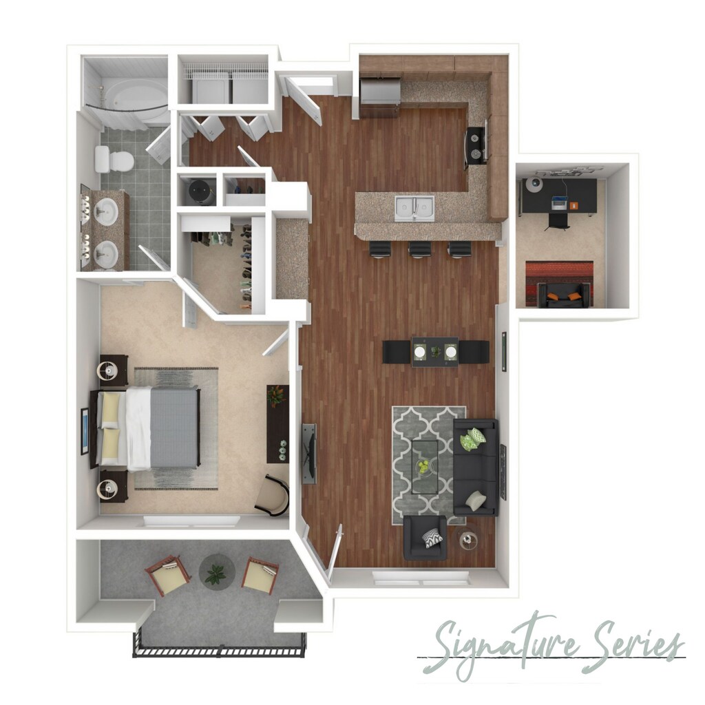 Modelo de apartamento: A1Desde $1,3451 Dormitorio, 1 Baño, 749 sq ftDisponible Ahora![]()
