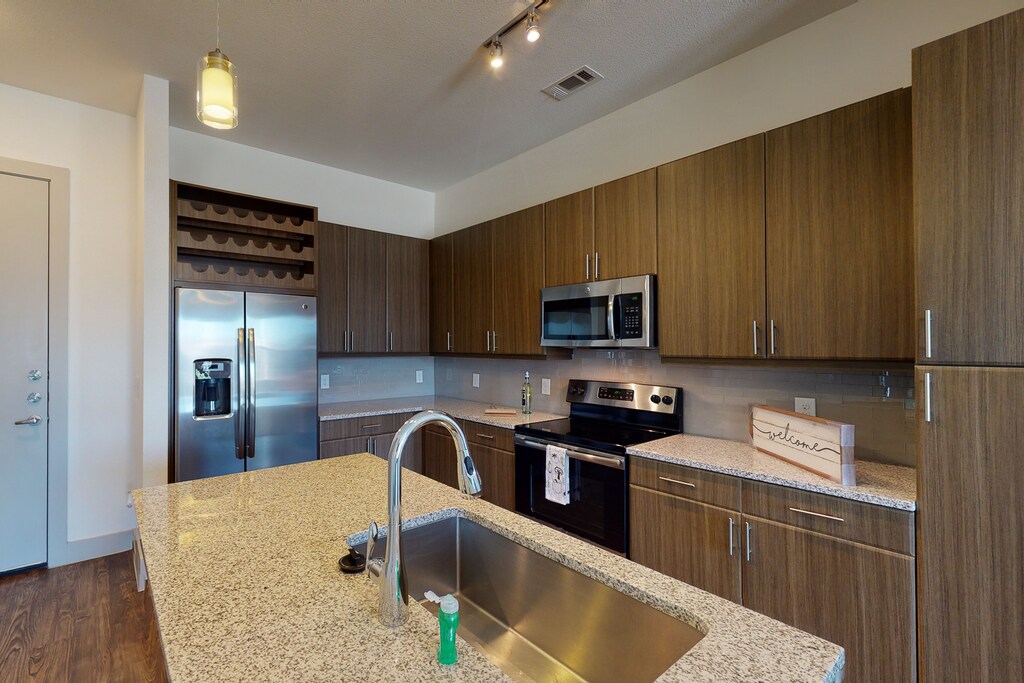 ¡Excelente ubicación! Ahora ofrecemos nuevos y lujosos apartamentos de 1, 2 y 3 habitaciones. Nuestro hermoso complejo de apartamentos de lujo está ubicado en el centro del área de Dallas/Fort Worth. Perfectamente ubicado, estamos a una distancia a pie de las oficinas centrales de American Airlines. Estamos a siete minutos en auto del Aeropuerto Internacional de Dallas/Fort Worth; además, nuestra ubicación ofrece acceso inmediato a Euless, Arlington, Bedford e Irving, Texas. No dejes que nuestra dirección en Fort Worth te engañe. Estamos realmente en el centro de todo. Disfruta de una exclusiva experiencia de vida con una excelente ubicación y acceso a todas las comodidades que te rodean: trabajo, lugares recreativos, excelentes restaurantes y vida nocturna. Regresa a casa al lujo urbano donde puedes relajarte y encontrar tu centro. Disfruta del sol en nuestra piscina tipo oasis urbano con terraza o haz ejercicio en nuestro gimnasio de última generación. No desees nada más y deléitate con la experiencia única de vivir en el centro de todo.