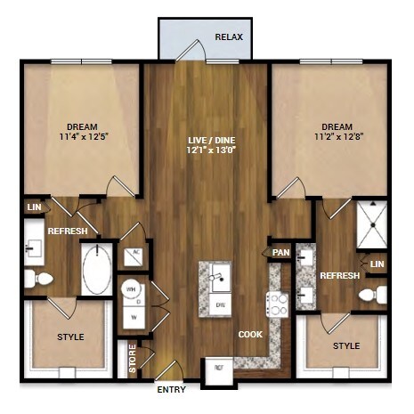 1 Dormitorio, 1 Baño, 848 pies²Disponible AhoraEl más grandeEsta opción tiene las unidades más grandes para este modeloGalería del Modelo