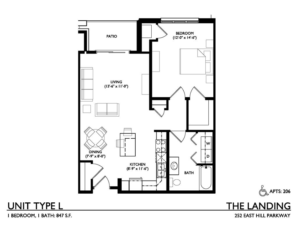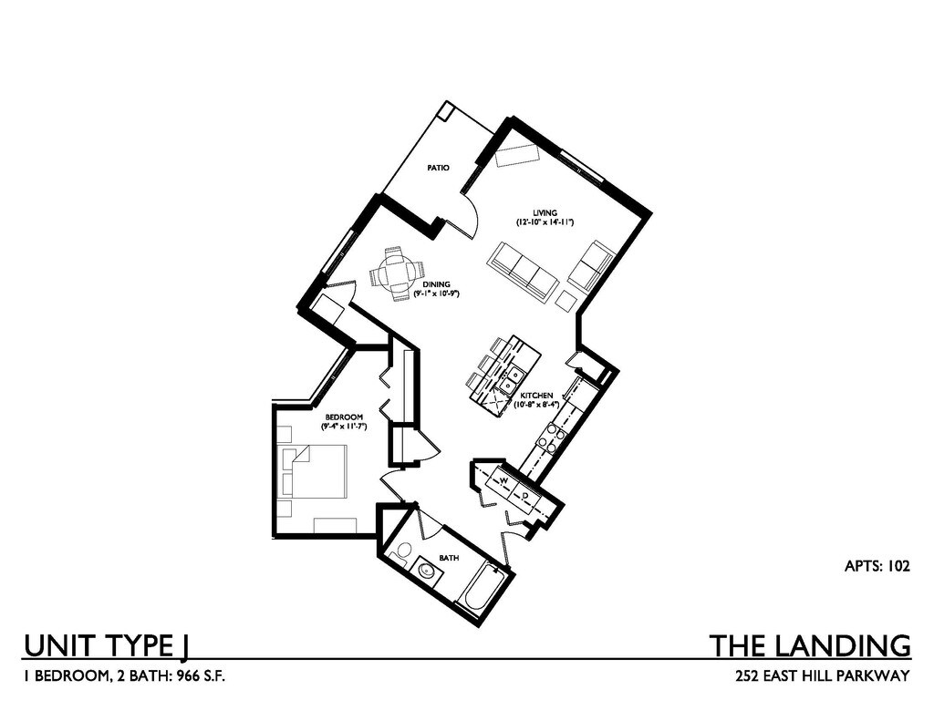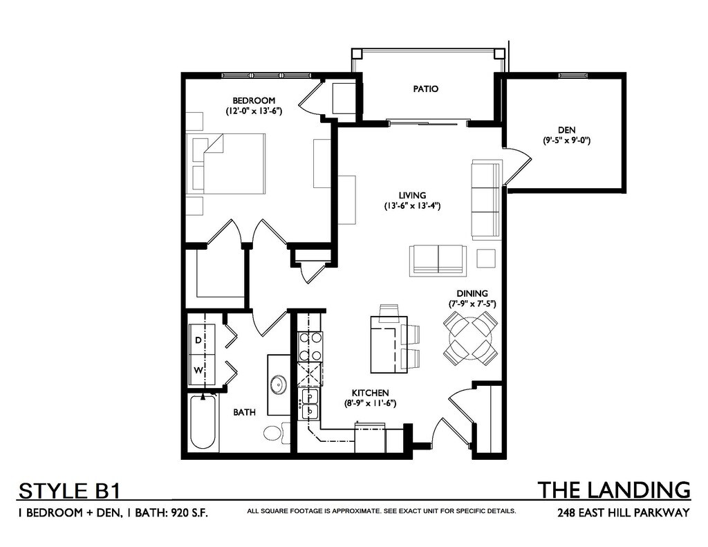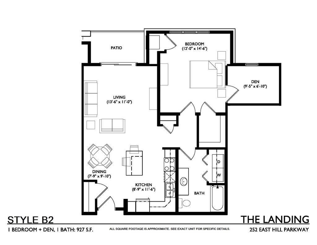 1 Dormitorio, 1 Baño, 815 pies²Galería del Modelo