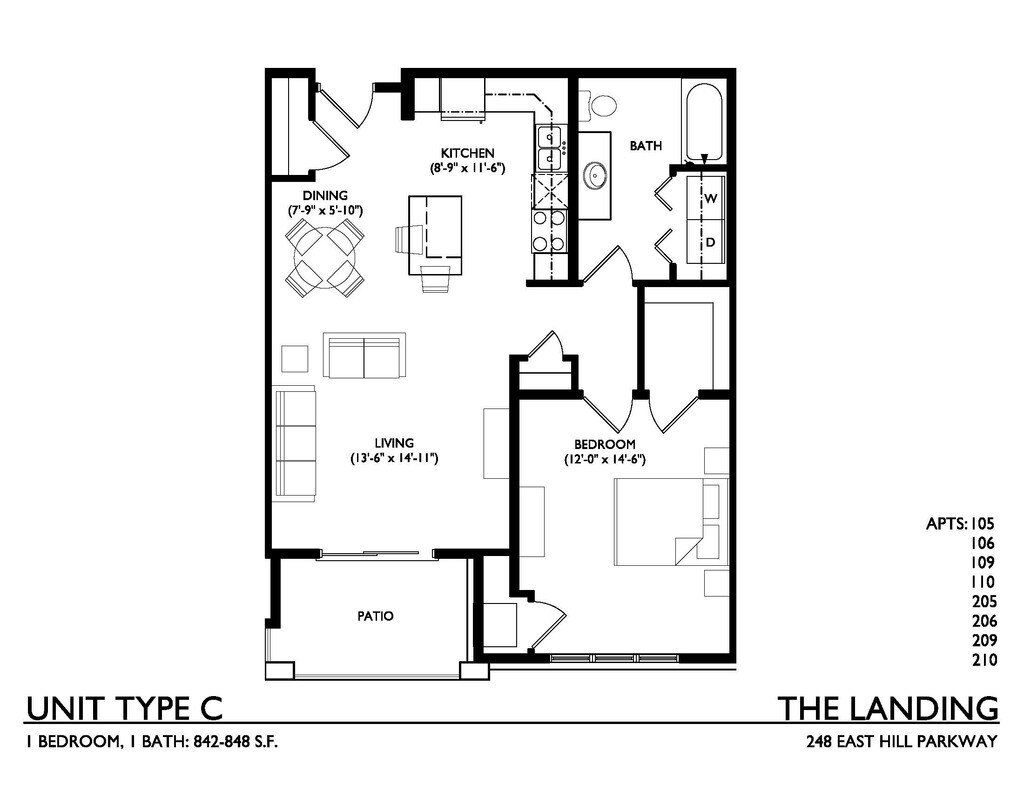 Modelo de apartamento: C5Llame para Precios1 Dormitorio, 1 Baño, 821 sq ftNo Disponible![]()