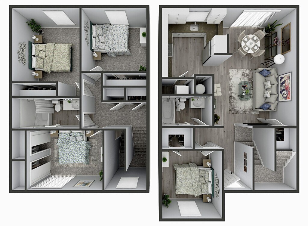 Modelo de apartamento: TL 4BR RenThe LandingsDesde $2,6004 Dormitorios, 2 Baños, 1486 sq ftDisponible Ahora![]()