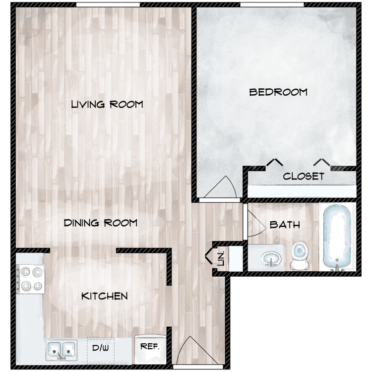One Bedroom One Bath - Plano 1 Unidad de apartamento: I-206Modelo de apartamento: One Bedroom One Bath$1,1001 Dormitorio, 1 Baño, 720 sq ftDisponible December 31, 2025One Bedroom One Bath Deluxe Washer Dryer