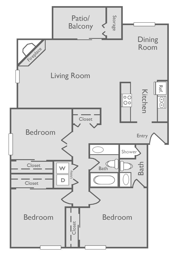 Modelo de apartamento: AmeliaDesde $9671 Dormitorio, 1 Baño, 700 sq ftDisponible Ahora![]()