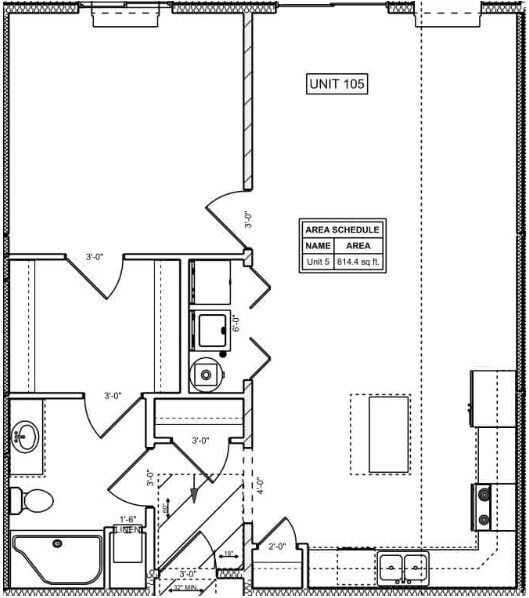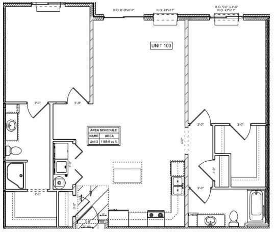 Modelo de apartamento: Unit 5Desde $1,1001 Dormitorio, 1 Baño, 814 sq ftDisponible Ahora![]()
