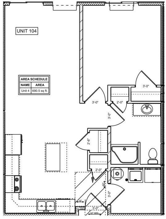 Modelo de apartamento: Unit 4$1,0501 Dormitorio, 1 Baño, 691 sq ftDisponible Ahora![]()