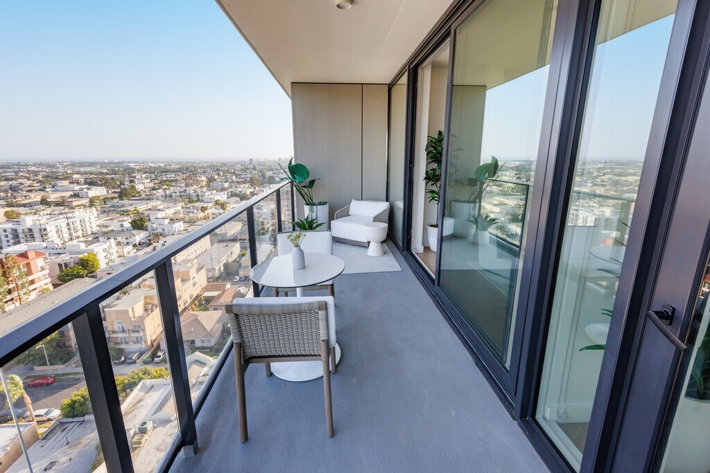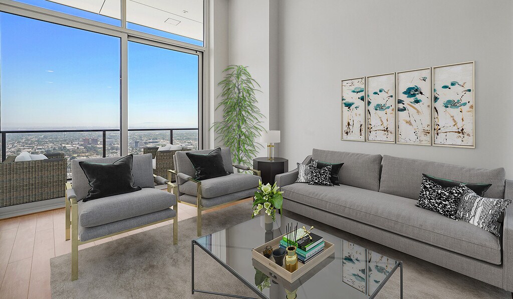 The Landmark Los Angeles (LMLA) es una torre residencial de 34 pisos que ofrece planos de planta sofisticados combinados con una vista inigualable y los servicios inspirados en un centro turístico. Con una ubicación céntrica en Wilshire Blvd. y frente a un hermoso parque de un acre, The Landmark Los Ángeles ofrece un tranquilo oasis de calma y una experiencia de vida intransigente discretamente apartada del ajetreo y el bullicio de la ciudad. El estilo de vida LMLA destaca el exclusivo estilo de vida de interior y al aire libre por el que Los Ángeles es conocido. Nuestras exclusivas suites de apartamentos con paredes de vidrio del piso al techo se abren a amplios balcones privados para disfrutar de espectaculares vistas a las montañas y al mar acompañadas de la fresca brisa del océano. Ponte en la mejor forma de tu vida en el gimnasio profesional o nada en la piscina de 75 ft x 25 ft. Para los días en los que todo lo que deseas hacer es ponerte cómodo y relajarte, te encontrarás en casa en medio de salones de lujo para residentes, la moderna sala club multimedia, braseros al aire libre y cafetería gourmet en el lugar. Nuestras residencias elegantes y modernas ofrecen ventanas del piso al techo con acceso al patio desde las habitaciones y salas de estar, cocinas gourmet con gabinetes italianos a medida e instalaciones de alta tecnología, electrodomésticos de bajo consumo, pisos de tablones estilo madera de excelente calidad, vestidores con estantes a medida, lavadora y secadora, persianas enrollables, y mucho más. Programa un recorrido hoy mismo.