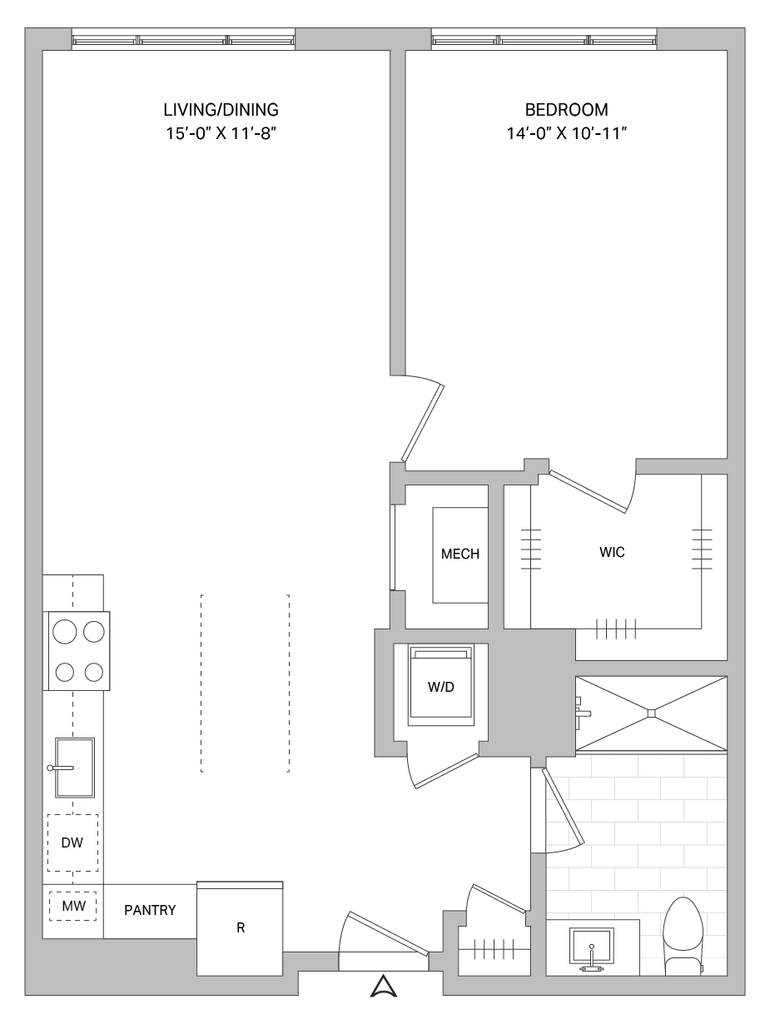 1 Dormitorio, 1 Baño, 730 pies²Disponible AhoraGalería del Modelo