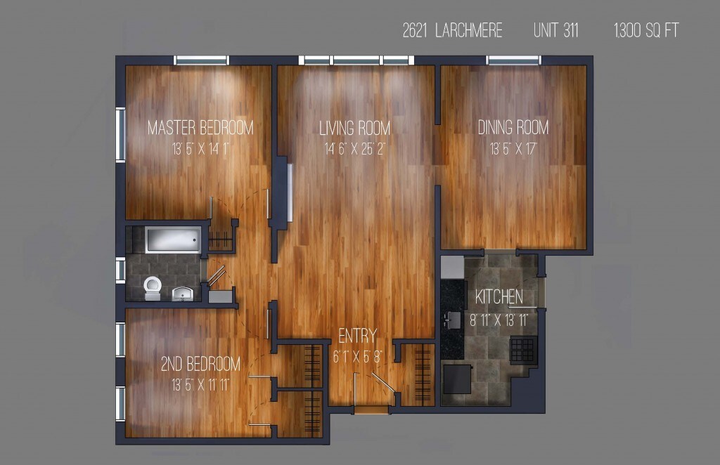 2 Dormitorios, 1 Baño, 1100 pies²Galería del Modelo