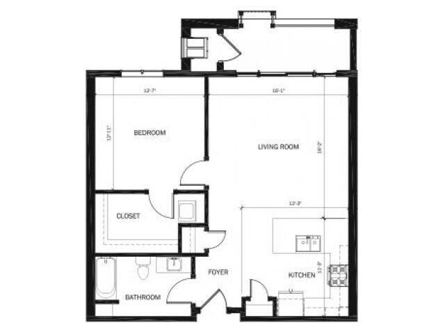 1 Dormitorio, 1 Baño, 789-1060 pies²Disponible Jul 1Galería del Modelo