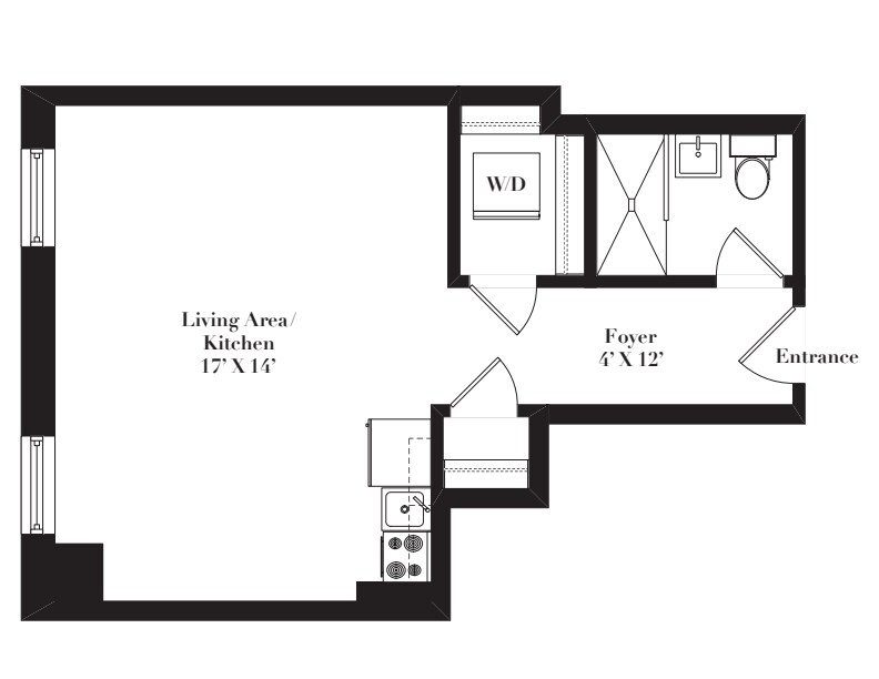 Estudio, 1 Baño, 300-305 pies²Disponible AhoraGalería del Modelo
