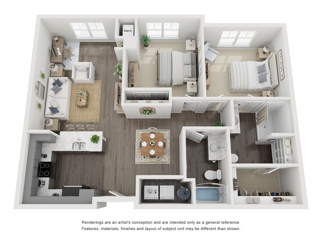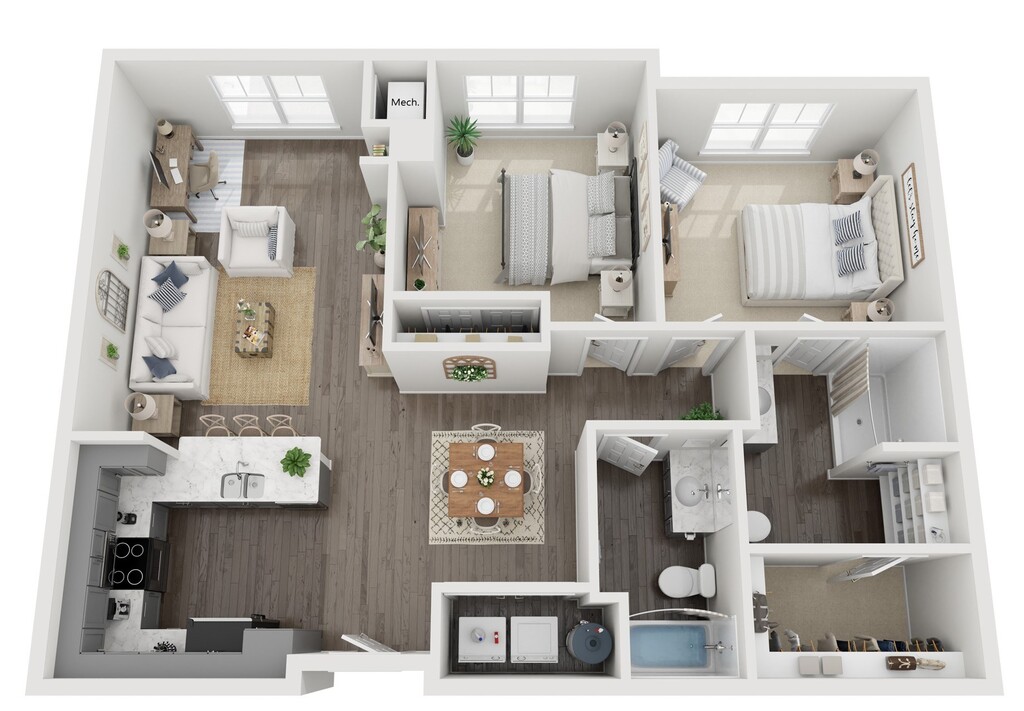 Modelo de apartamento: B1Llame para Precios2 Dormitorios, 2 Baños, 1158 sq ftNo Disponible![]()