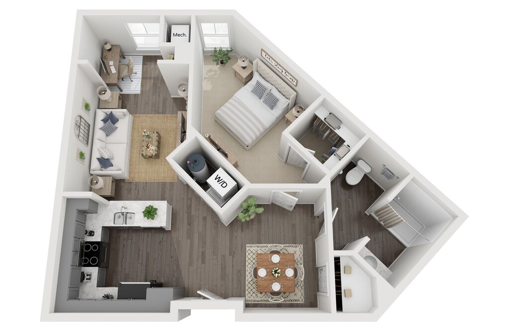 Modelo de apartamento: A1Desde $1,6751 Dormitorio, 1 Baño, 891 sq ftDisponible Ahora![]()