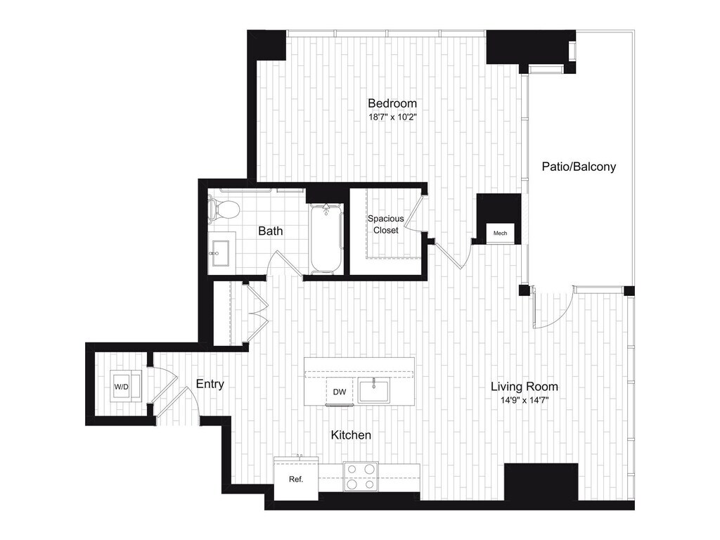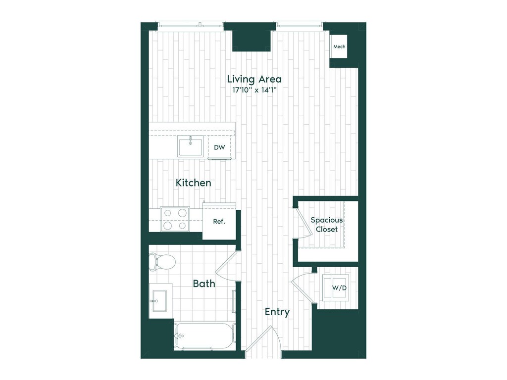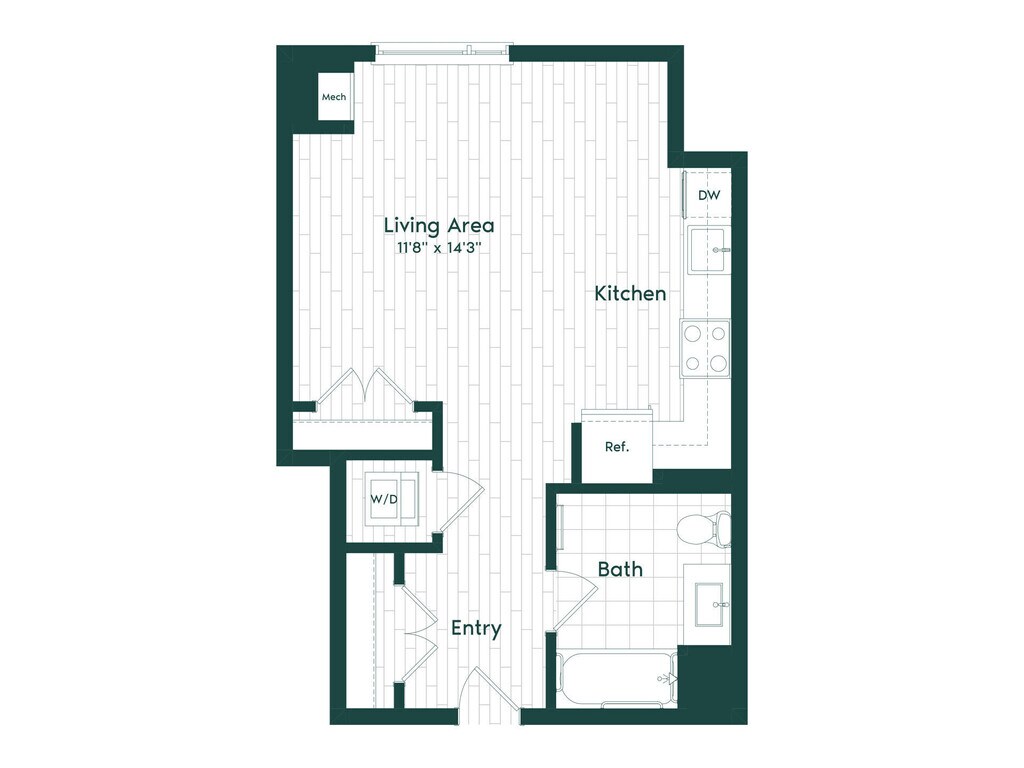 Estudio, 1 Baño, 509 pies²Disponible AhoraGalería del Modelo