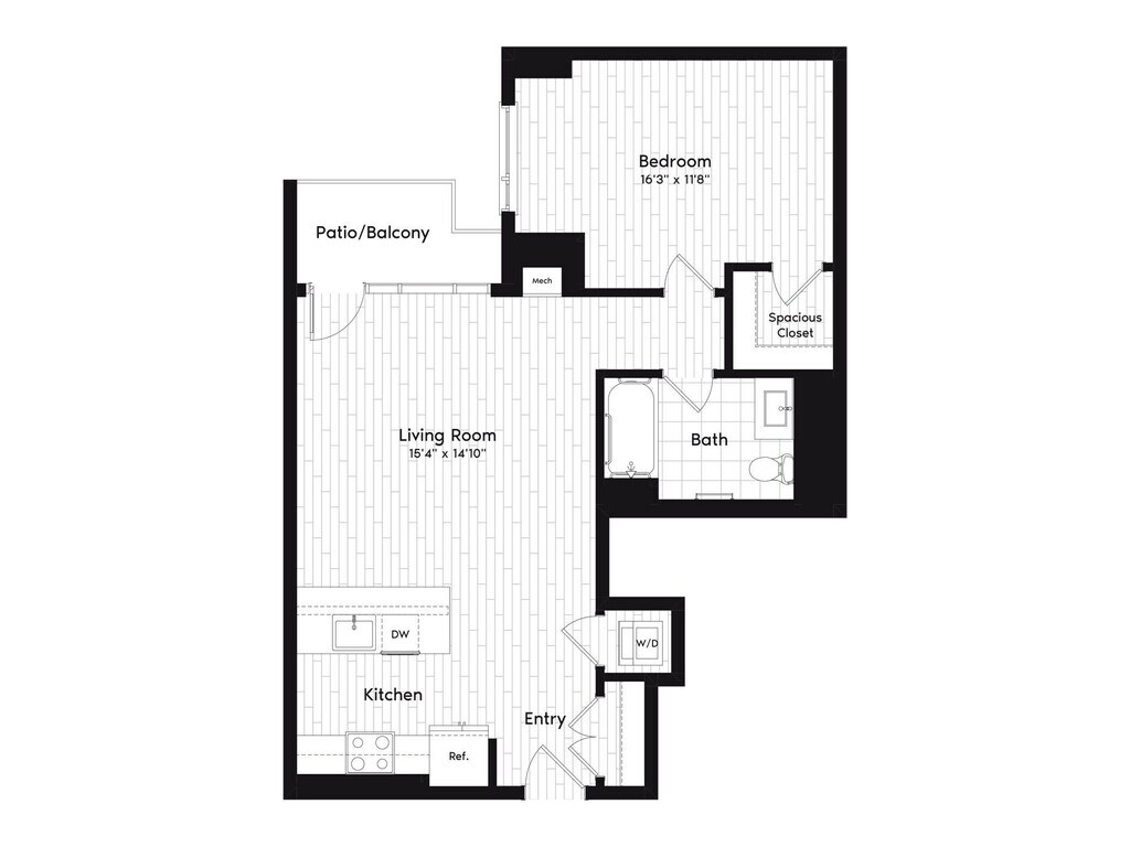 Estudio, 1 Baño, 603 pies²Disponible AhoraEl más grandeEsta opción tiene las unidades más grandes para este modeloGalería del Modelo